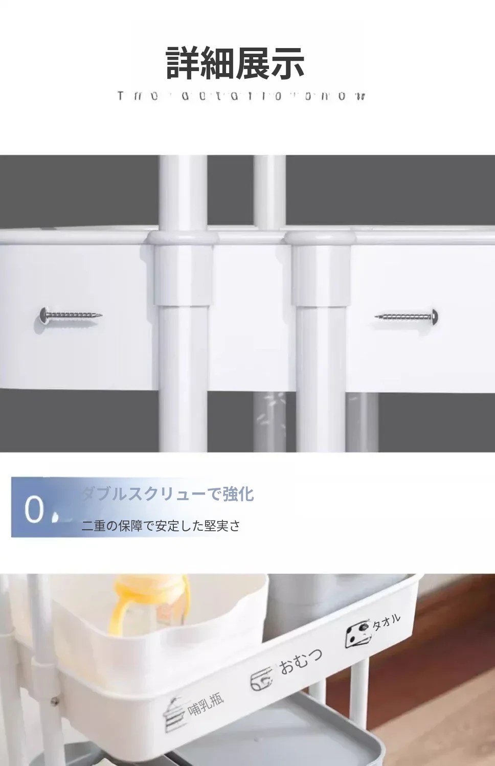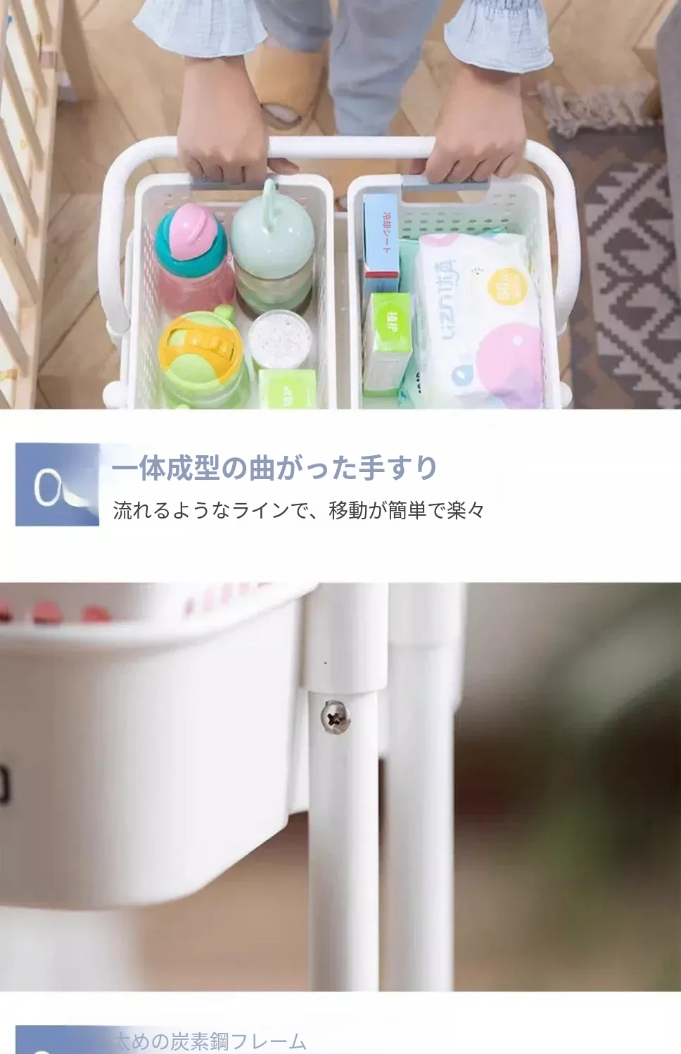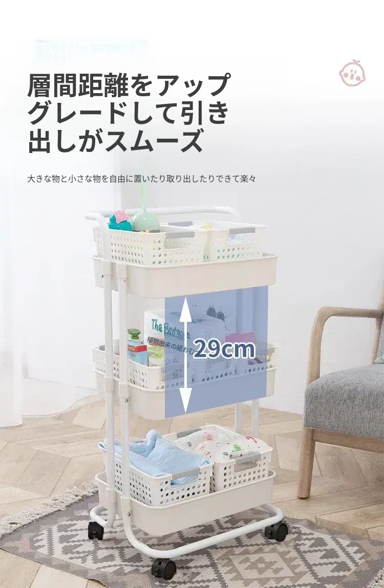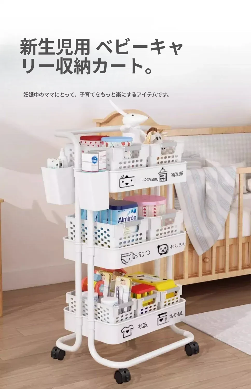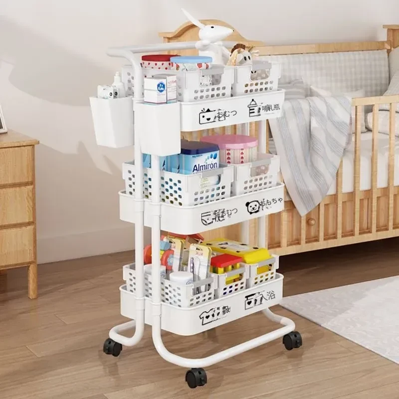 多機能小型ワゴン!キッチン、寝室、バスルームにぴったりの収納ラック - おむつやベビーおやつも楽々整理!移動も簡単で、スペースを有効活用!