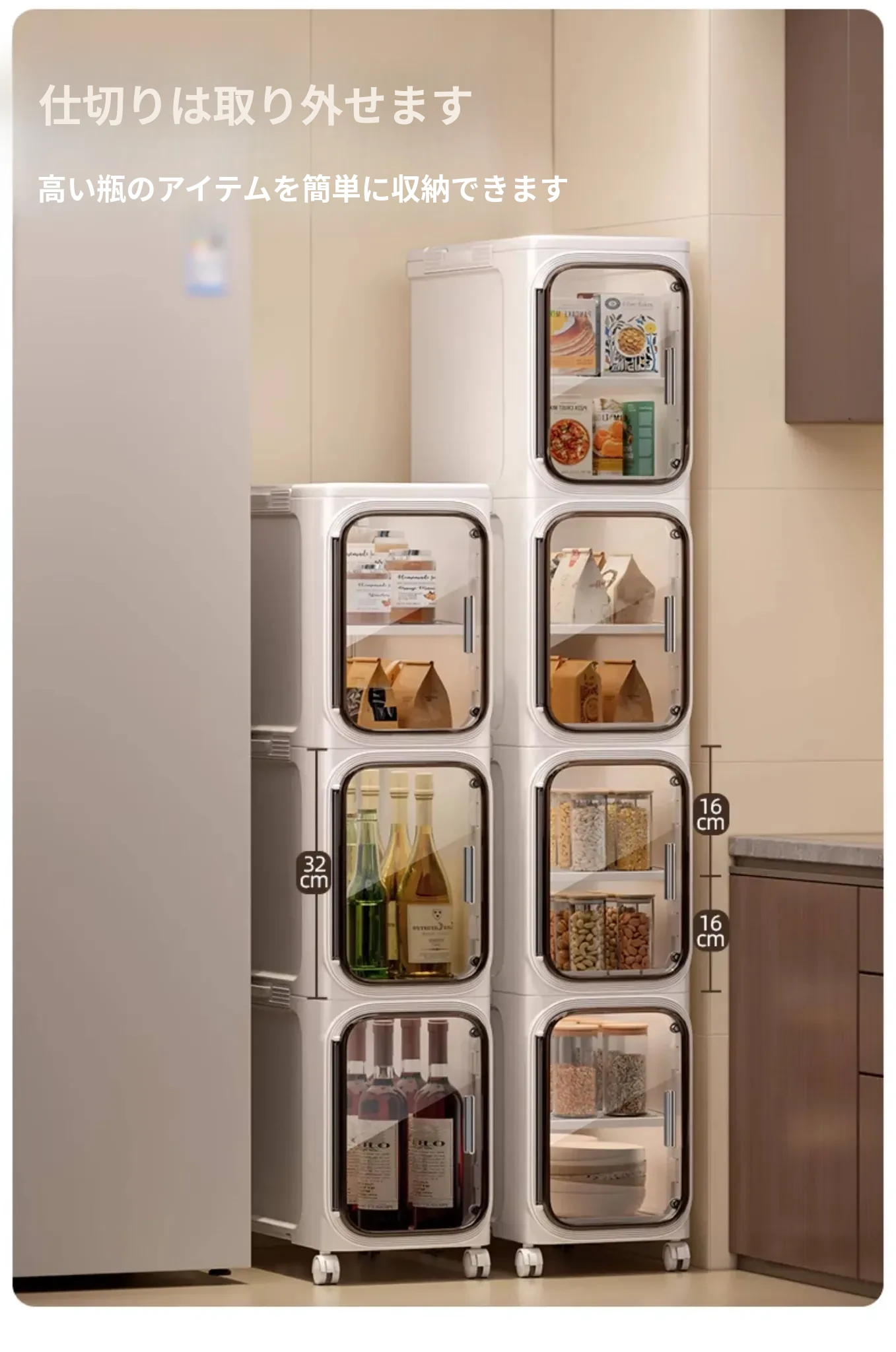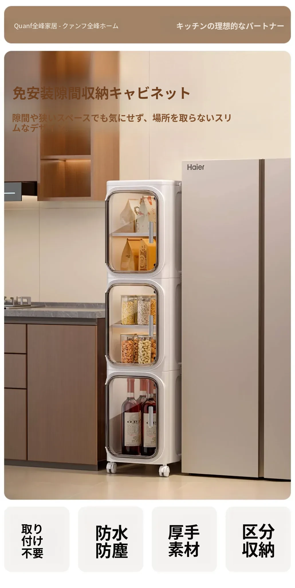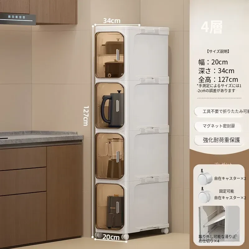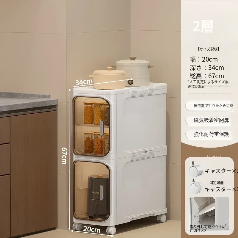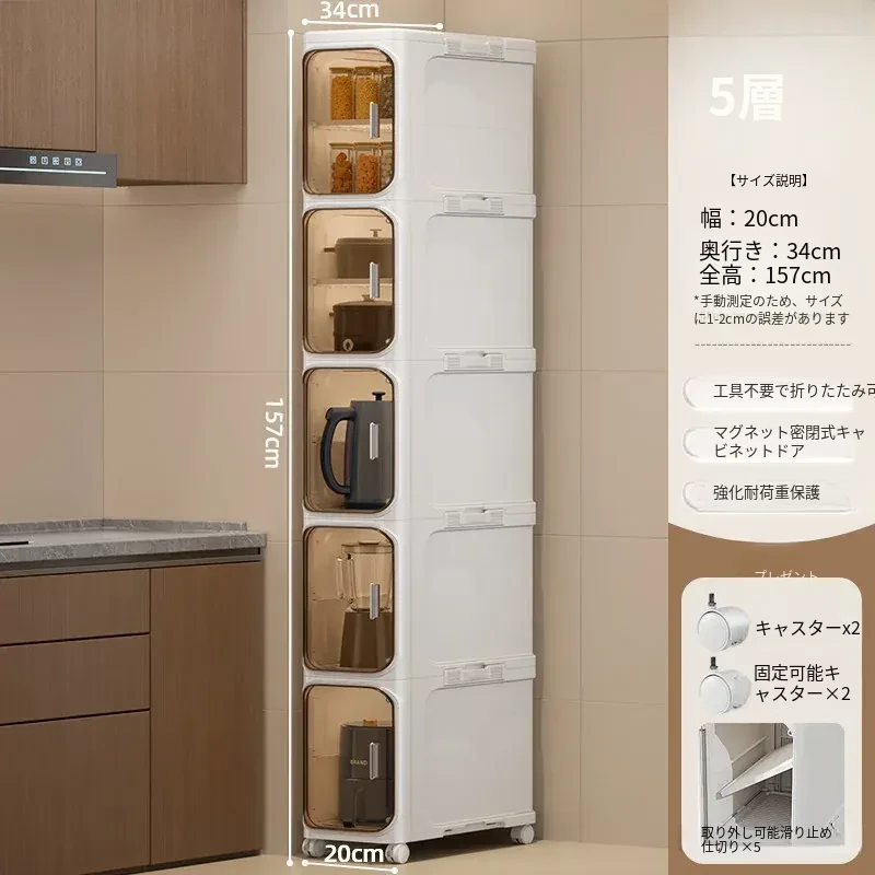 キッチン用多層可動収納キャビネット - 20cmの狭い隙間にぴったりフィット!プラスチック製のスリムな収納ラックで、隙間を有効活用し、整理整頓をサポートします。