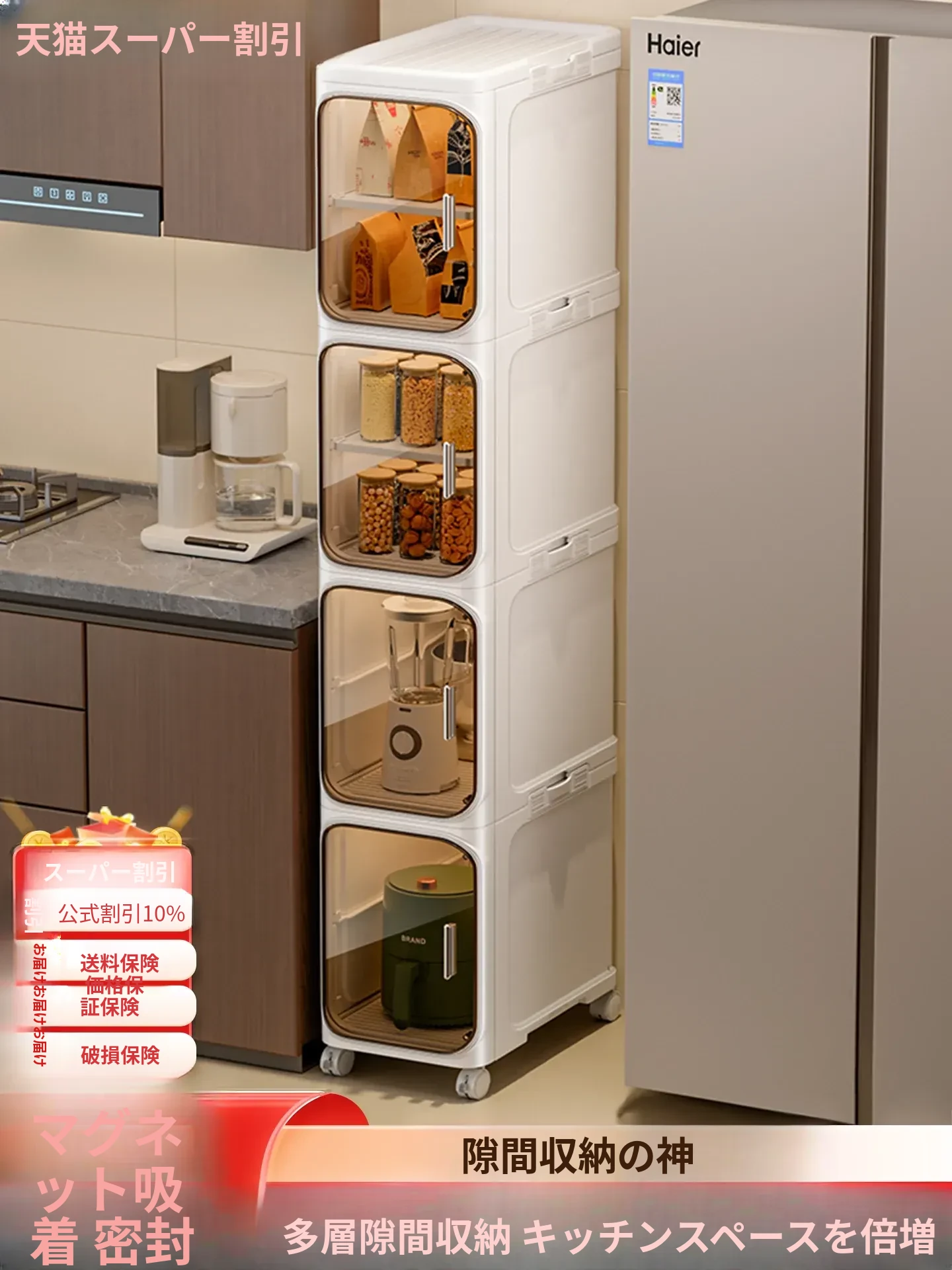 五層-20CM狭型【取り付け不要、マグネット吸着密封防塵防虫】