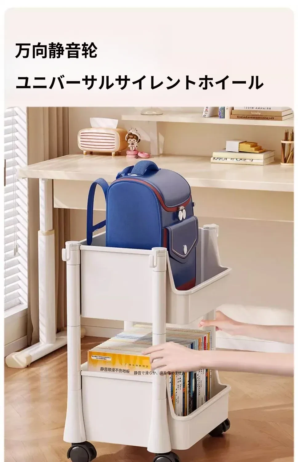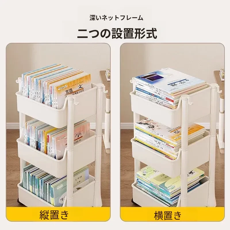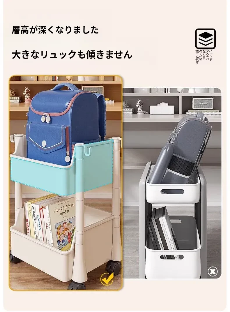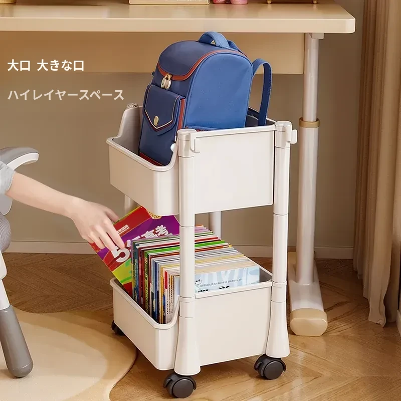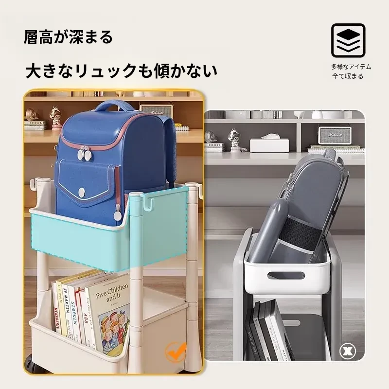 移動式ブックスタンド!多層収納で書籍やリュックをスッキリ整理。家庭用に最適なデスク下収納ラック。手軽に移動できるから、どこでも使える便利アイテム!
