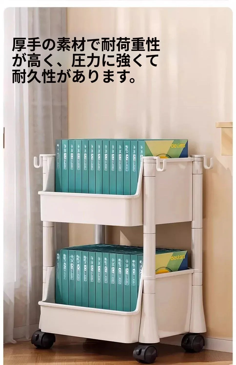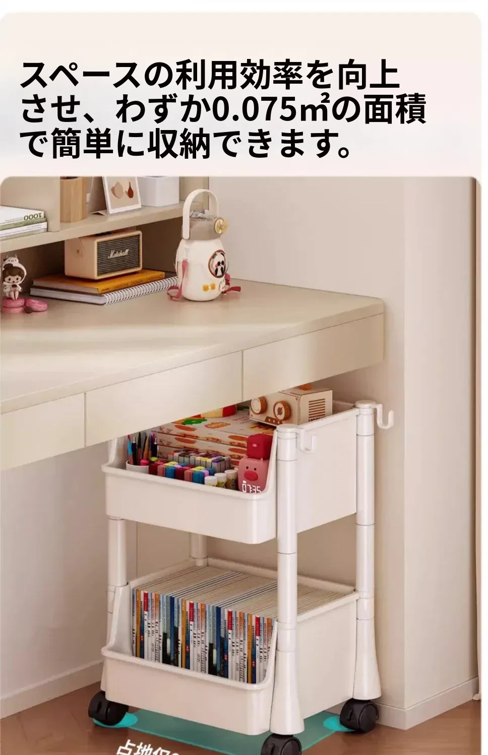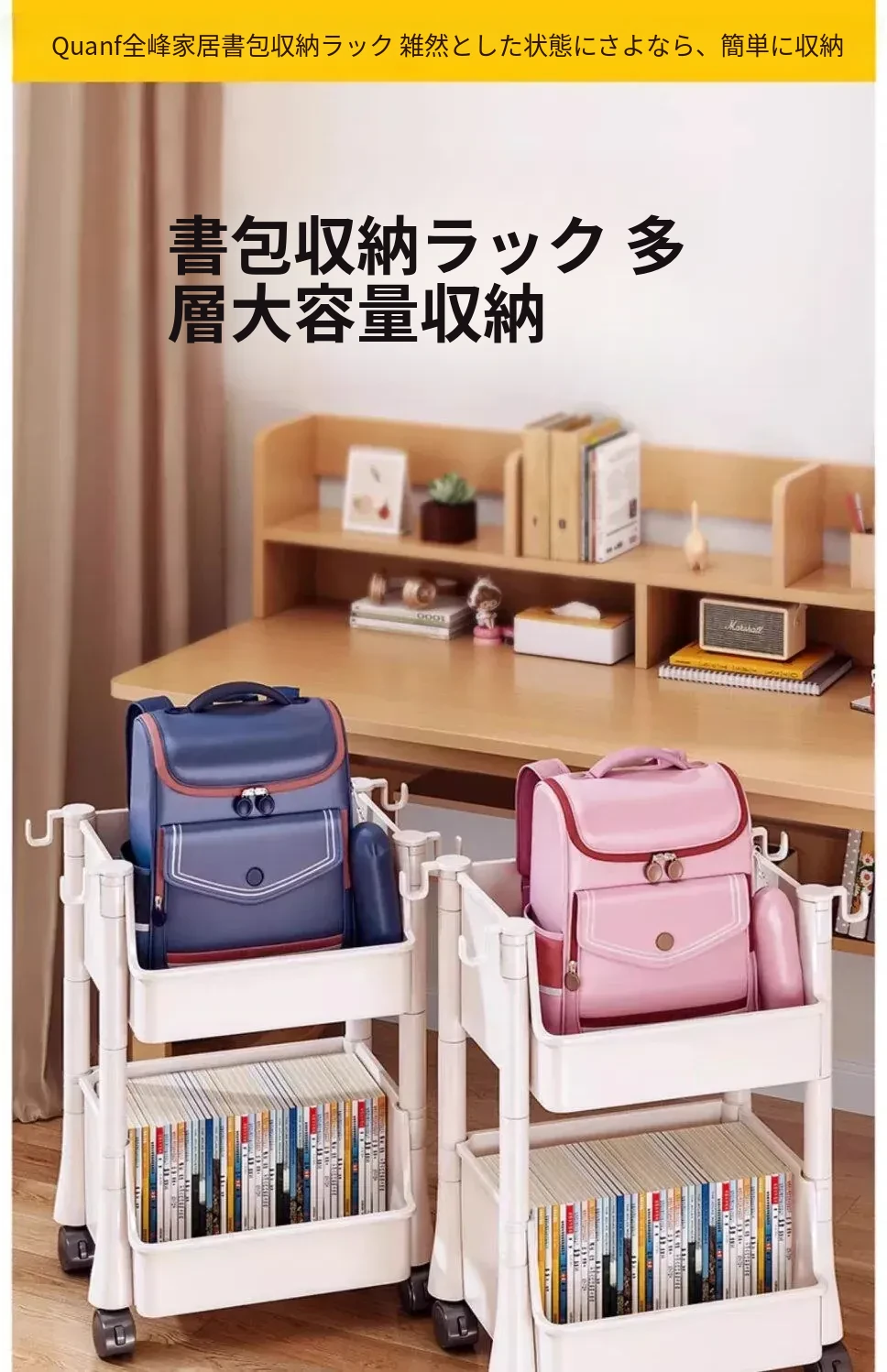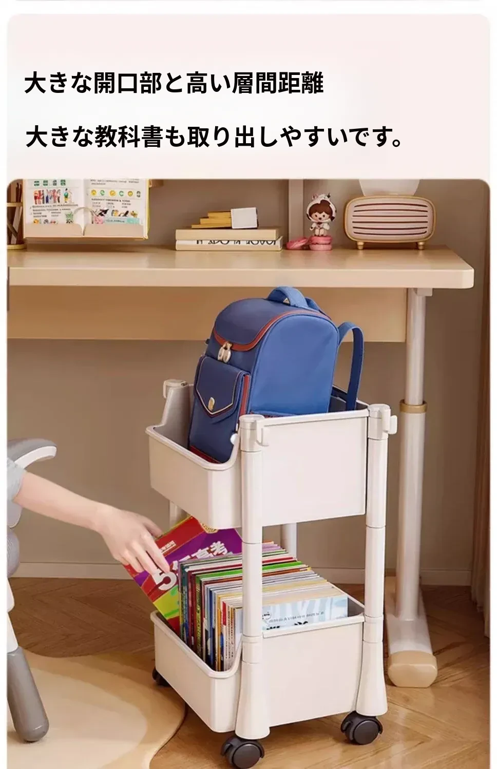 移動式ブックスタンド!多層収納で書籍やリュックをスッキリ整理。家庭用に最適なデスク下収納ラック。手軽に移動できるから、どこでも使える便利アイテム!