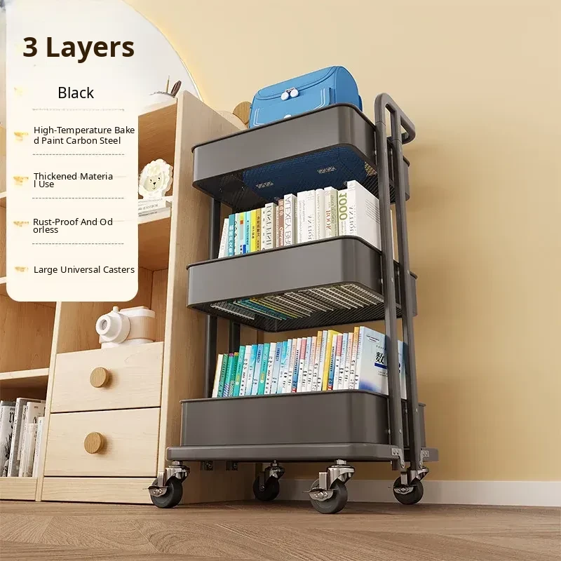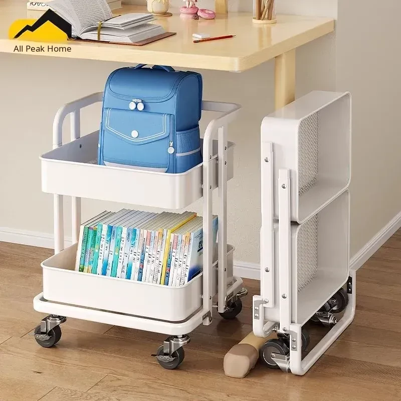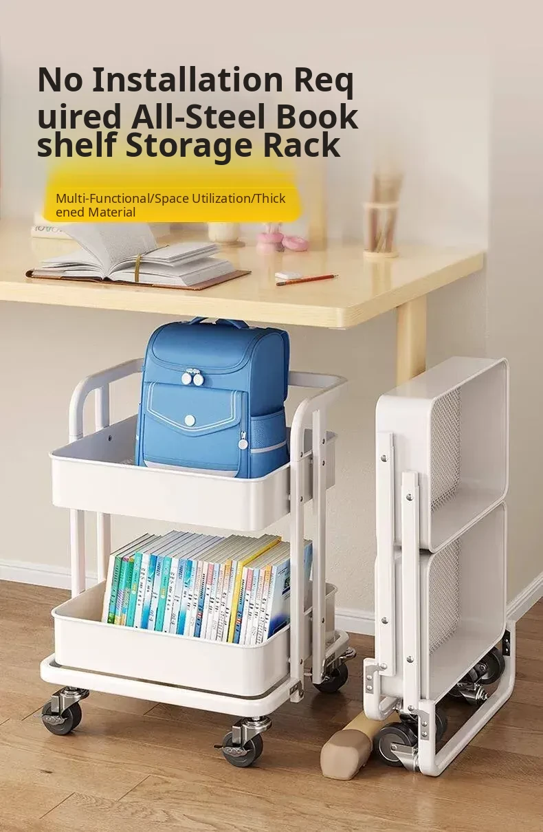 Portable Multi-Layer Book Storage Cart - Foldable Under-Desk Backpack Organizer, Perfect for Home Use, Keeps Your Books and Bags Neatly Stored!