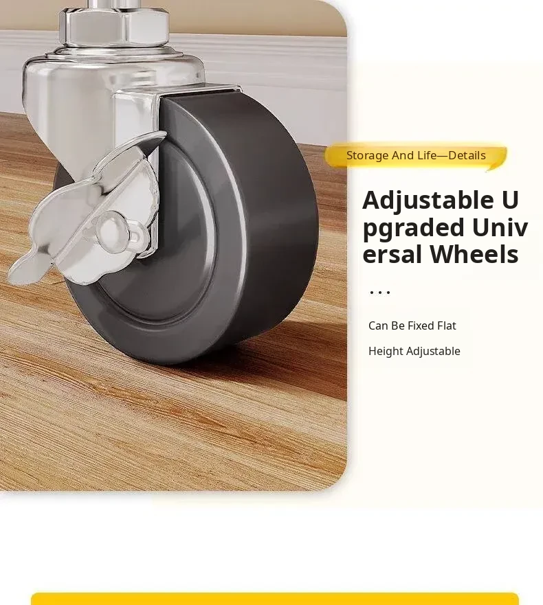 4 Heavy-Duty Casters, Black, Overall Length 17.13in The Height of the Frame Is 3.15in (Three Layers) and the Total Height Is 36.22in