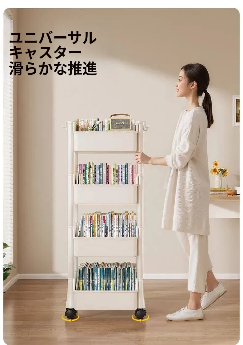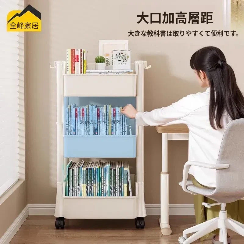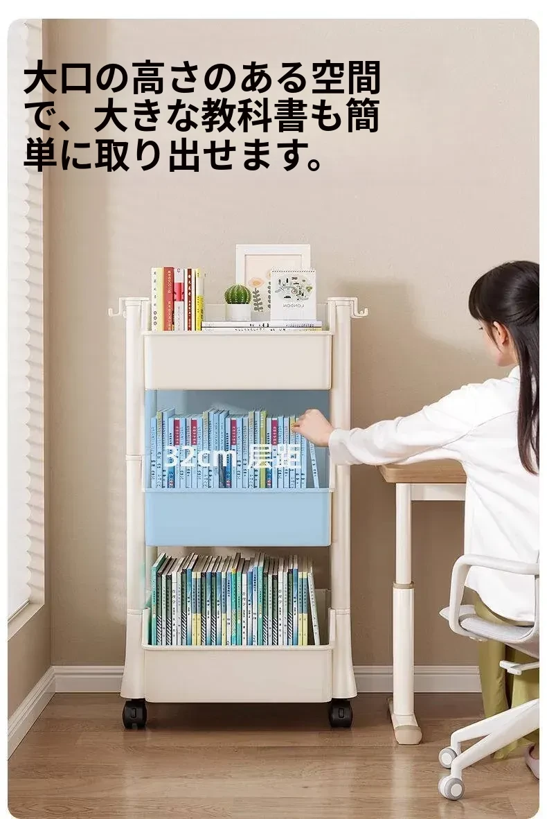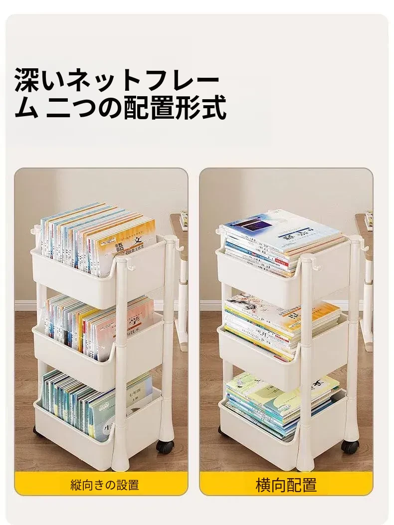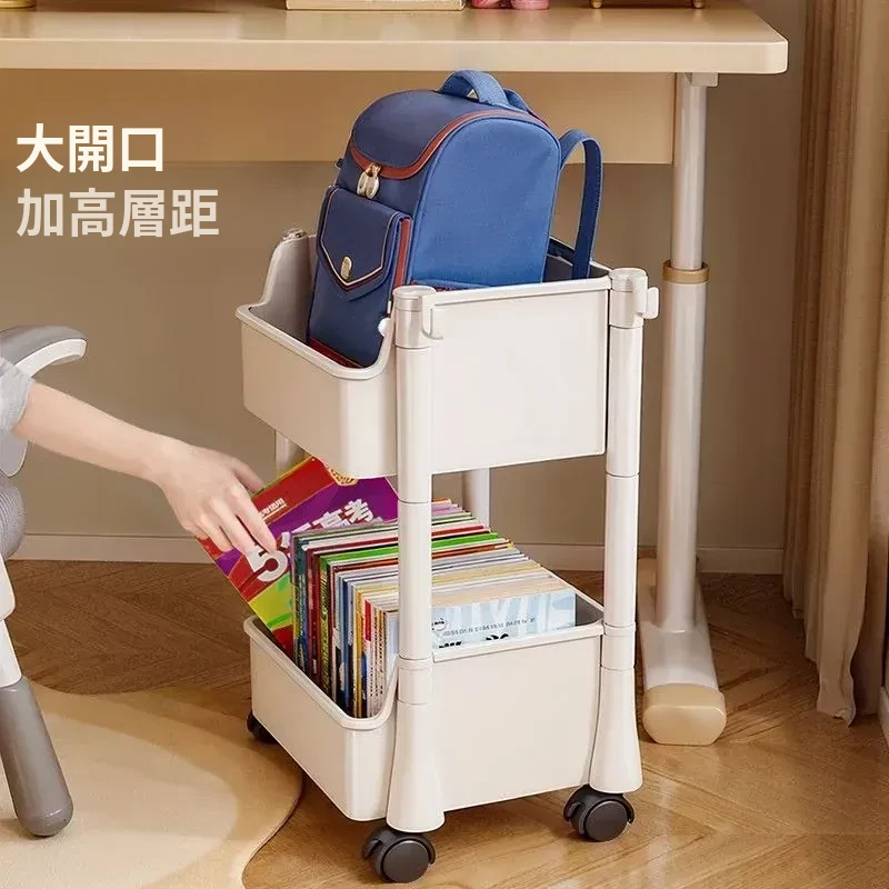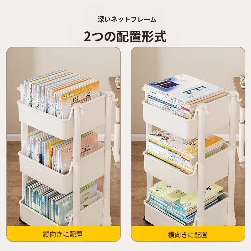 移動式書包置物架、小型収納カート!多層設計で家でも学校でも大活躍!書籍やバッグをスッキリ収納、デスク下にもぴったりフィット!整理整頓の必需品、あなたの生活をもっと便利に!
