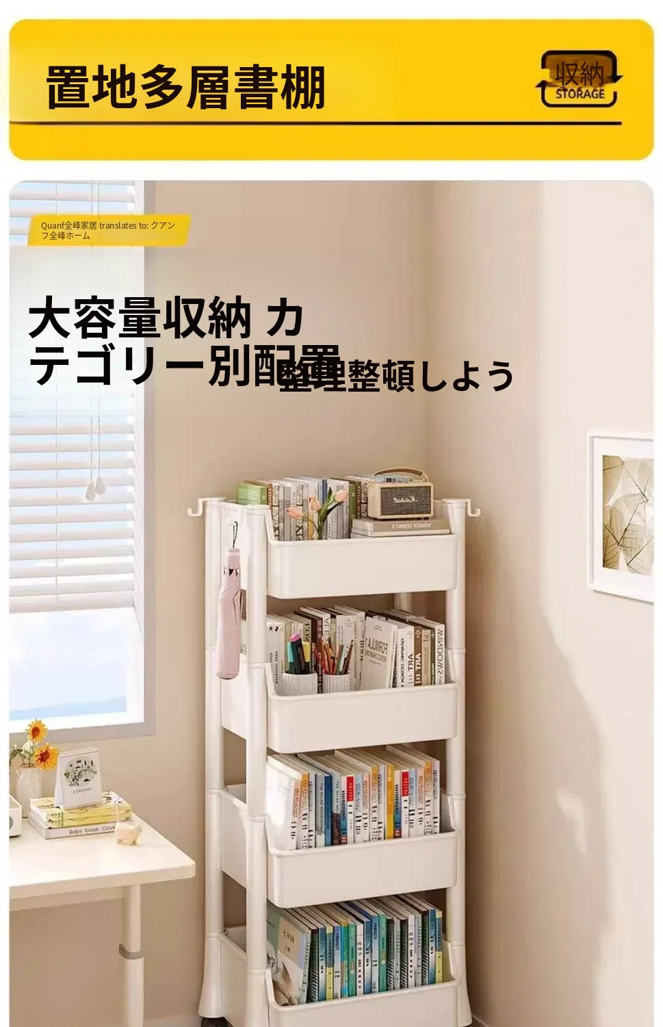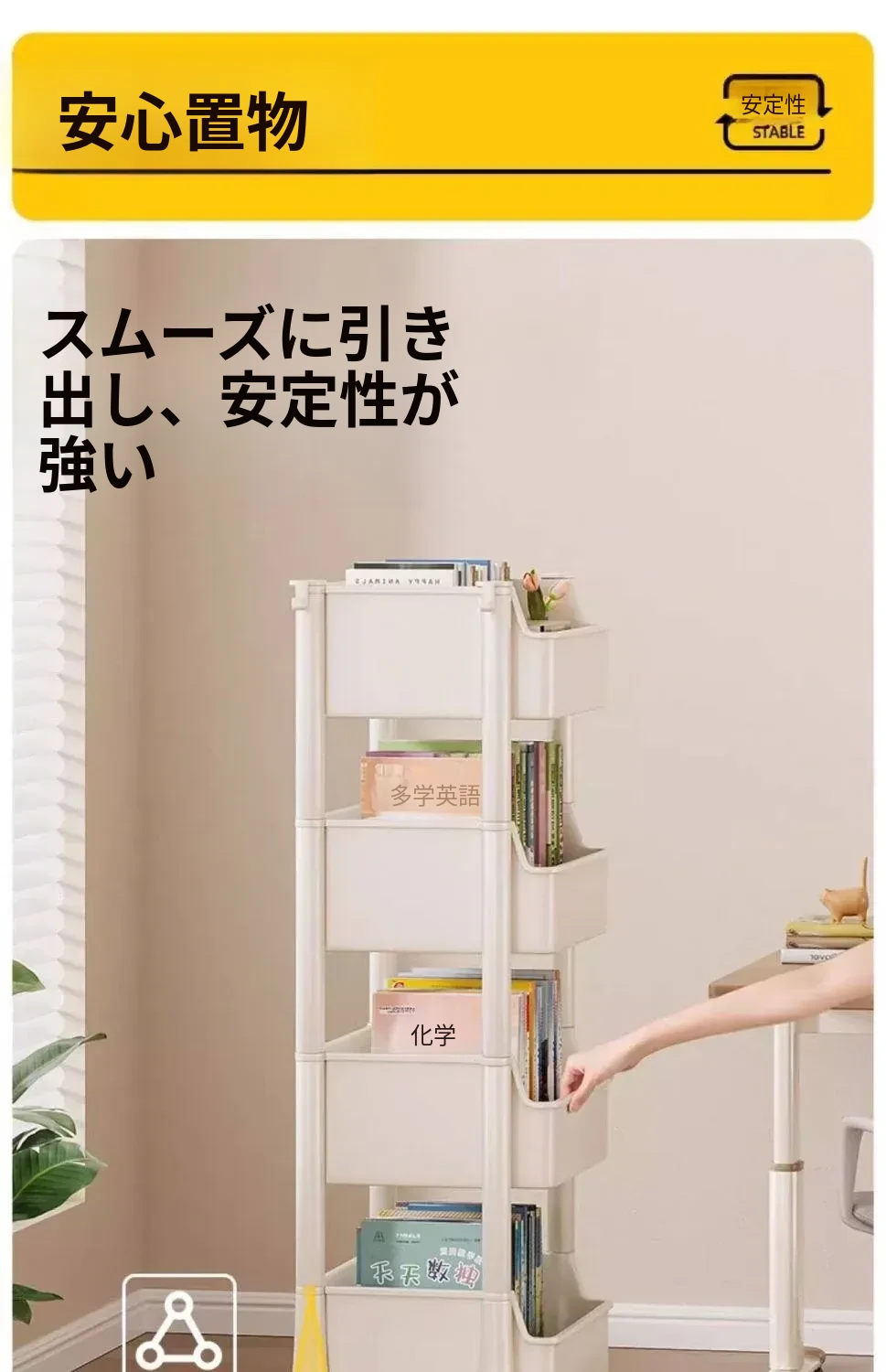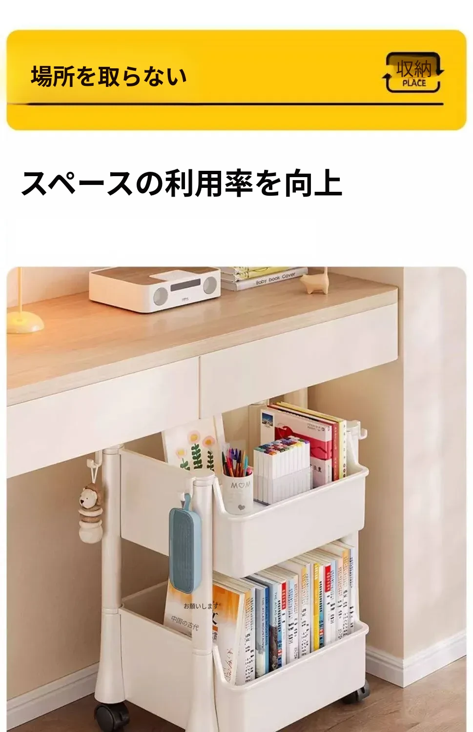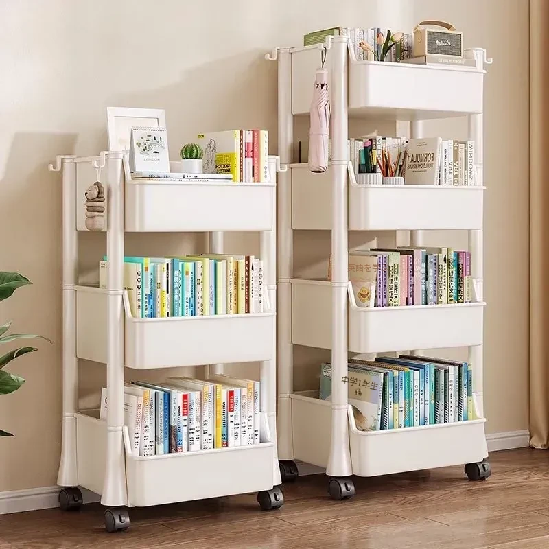 移動式書包置物架、小型収納カート!多層設計で家でも学校でも大活躍!書籍やバッグをスッキリ収納、デスク下にもぴったりフィット!整理整頓の必需品、あなたの生活をもっと便利に!