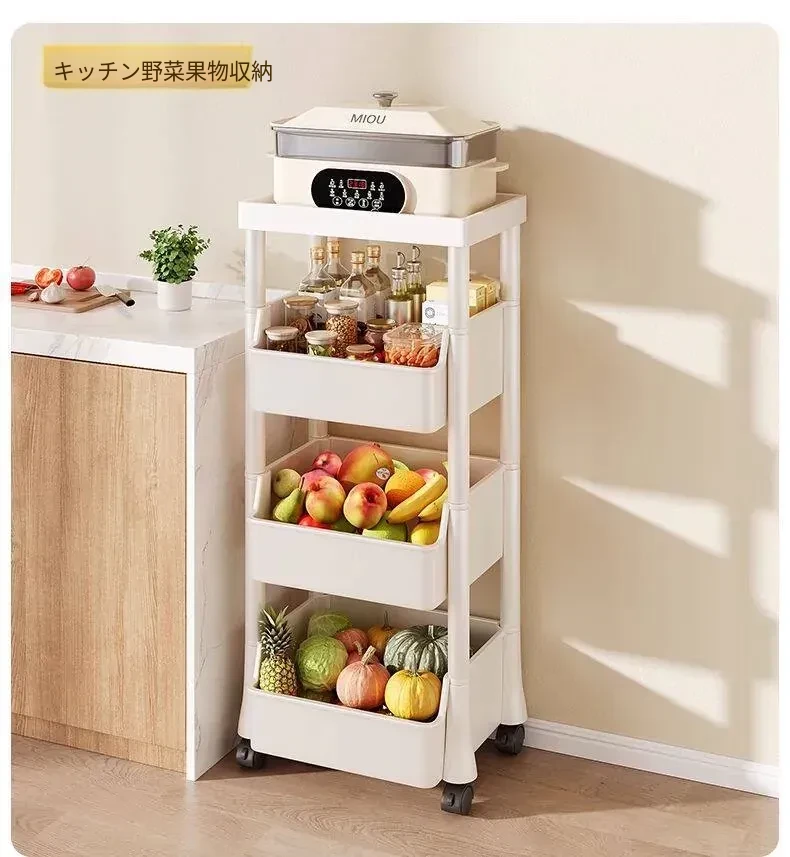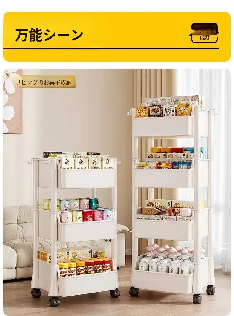 4万向キャスター【アップグレードタイプ】 1ハンギングバスケット収納 長さ34cm幅28cm高さ84cm-三段