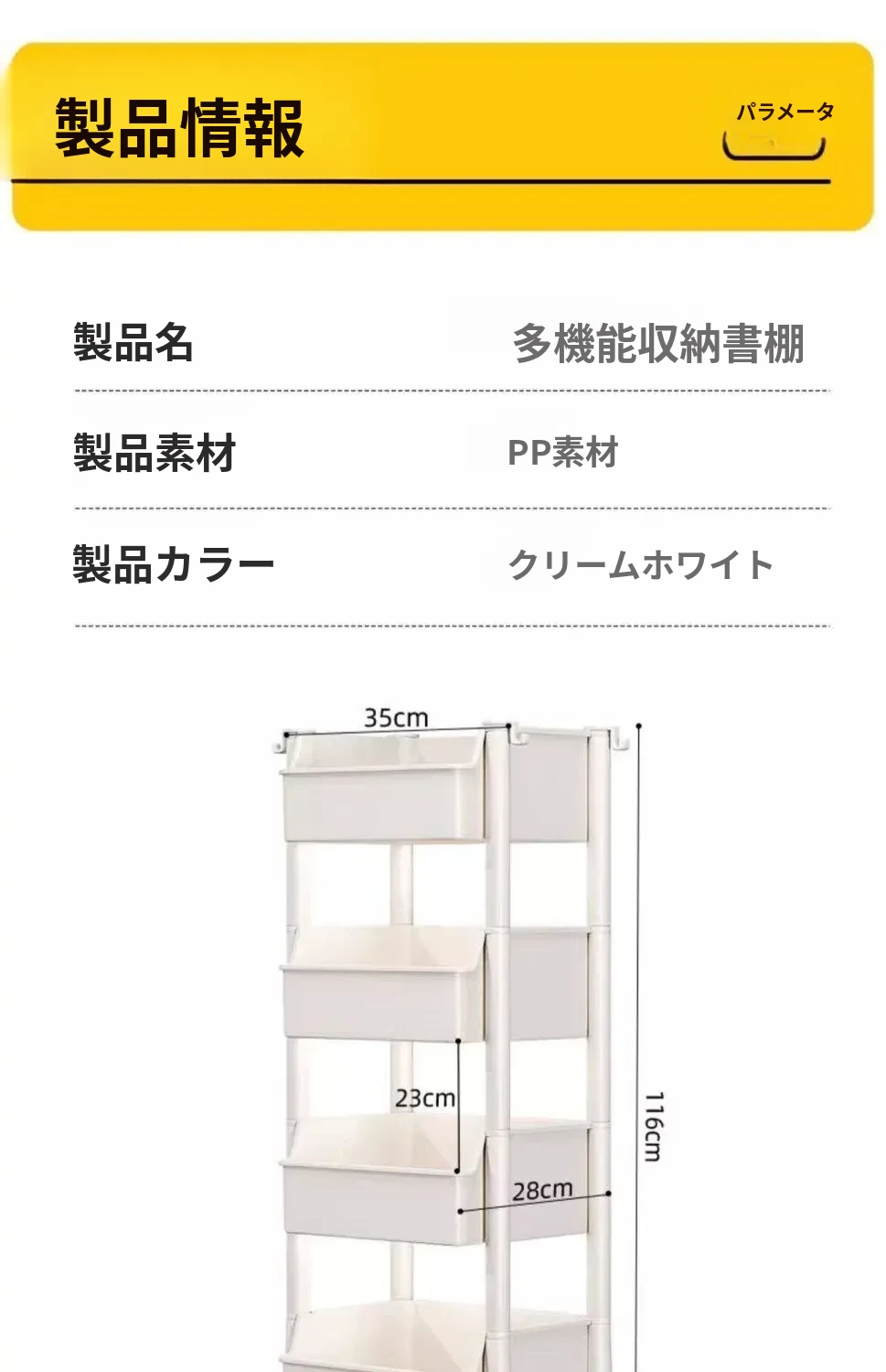 4万向キャスター【アップグレードタイプ】 1ハンギングバスケット収納 長さ34cm幅28cm高さ115cm-四段