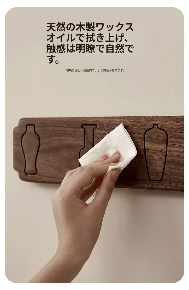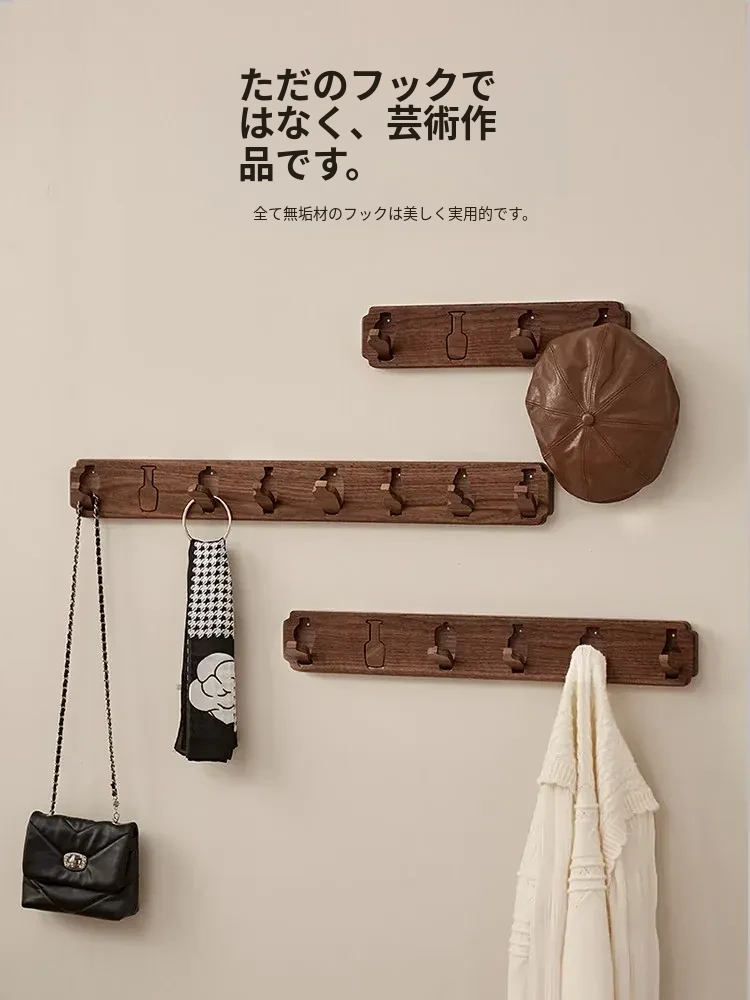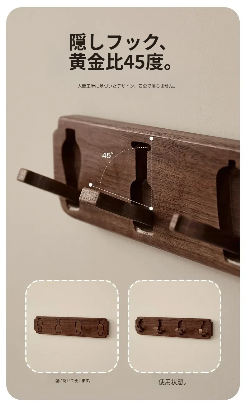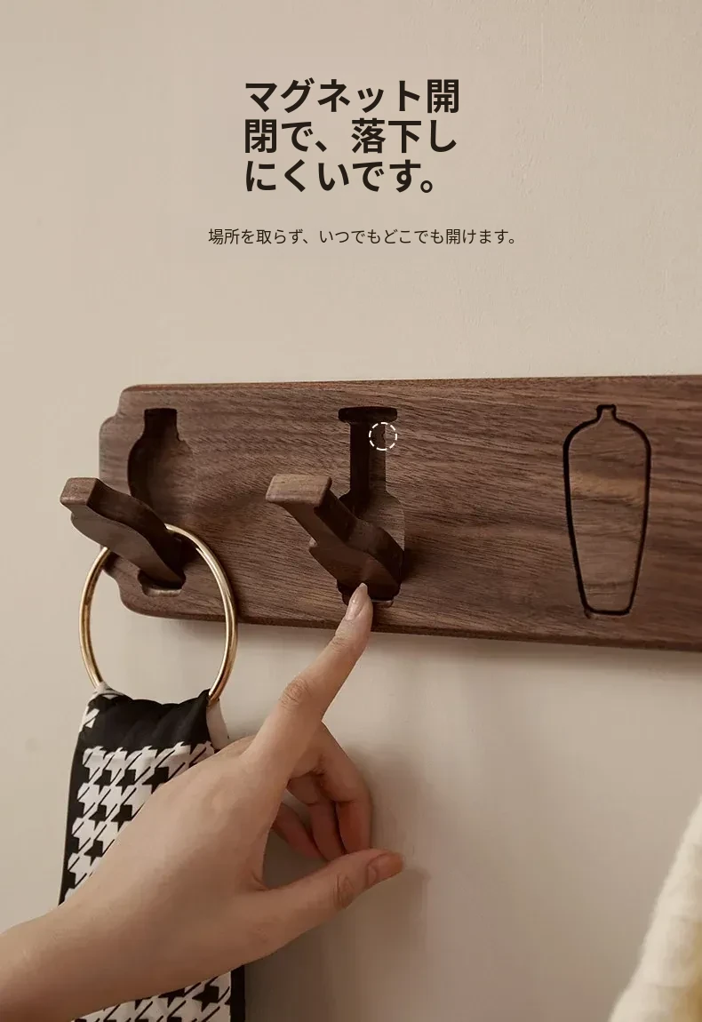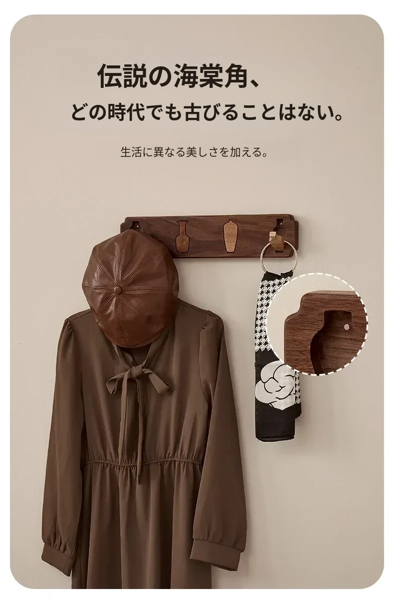 木町の玄関壁掛けフック - 強力粘着で簡単取り付け、穴あけ不要!高級天然木製で、衣服や帽子をしっかり支える耐荷重設計。洗練されたデザインで玄関をスタイリッシュに演出します!