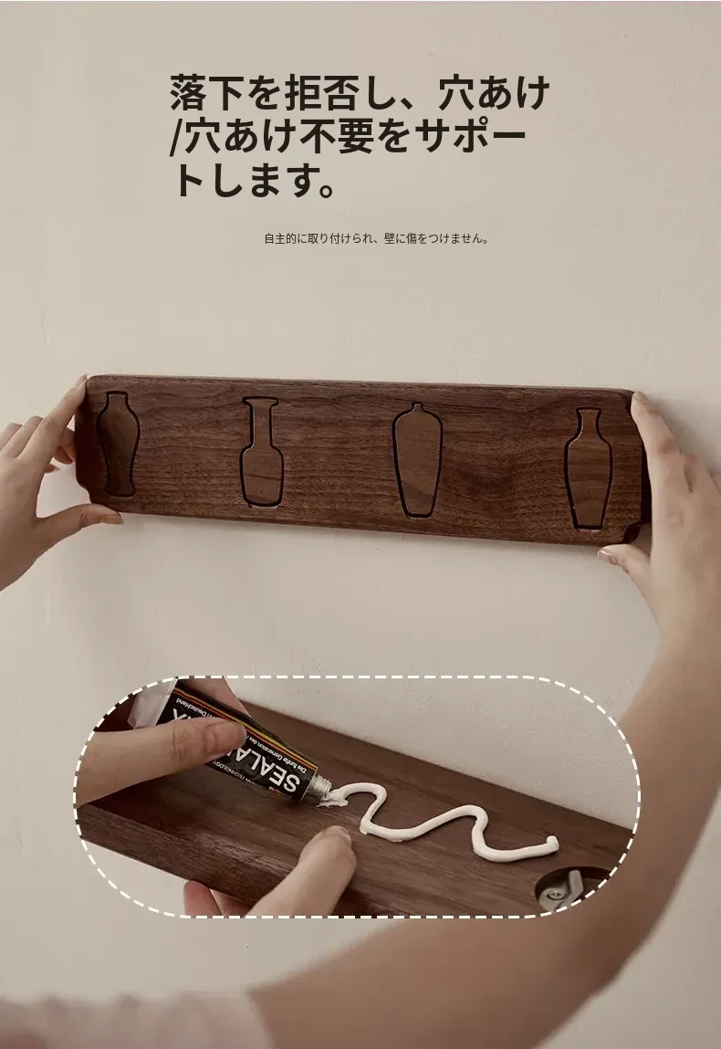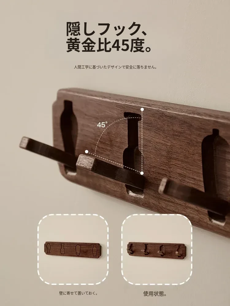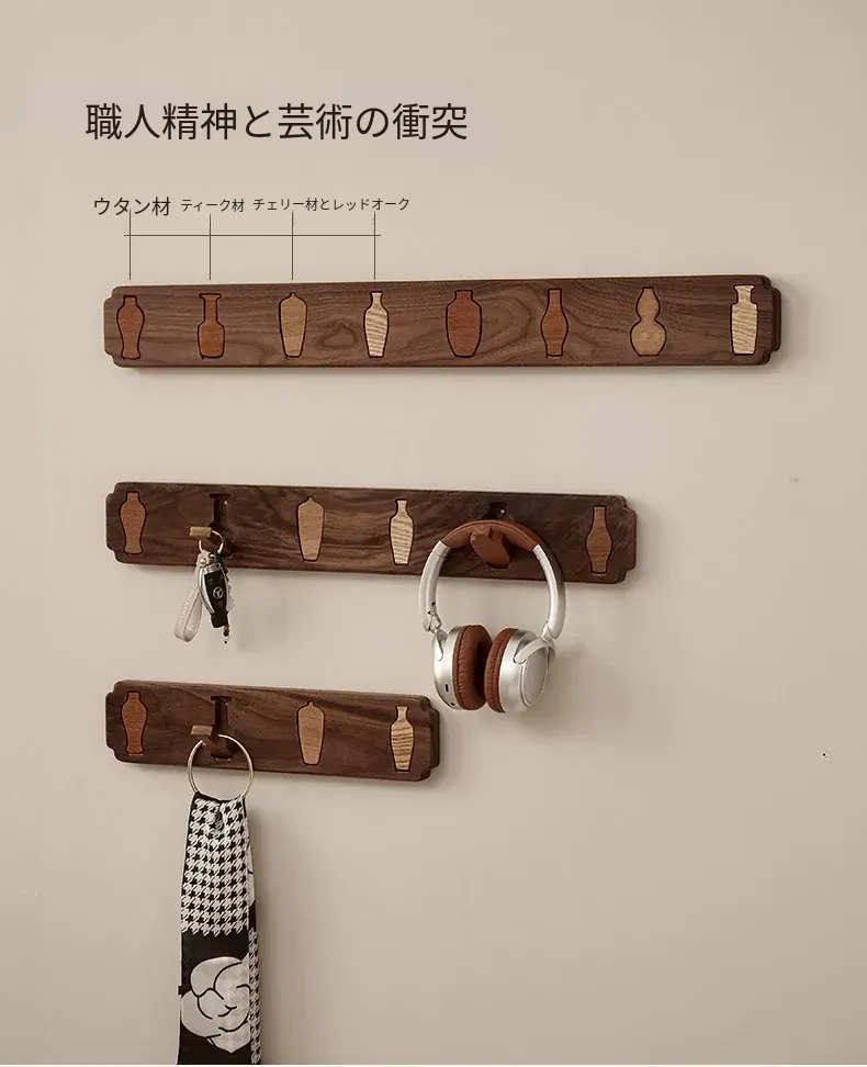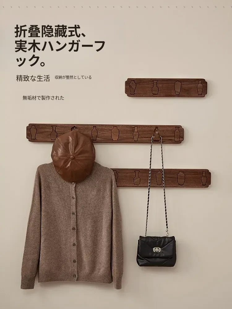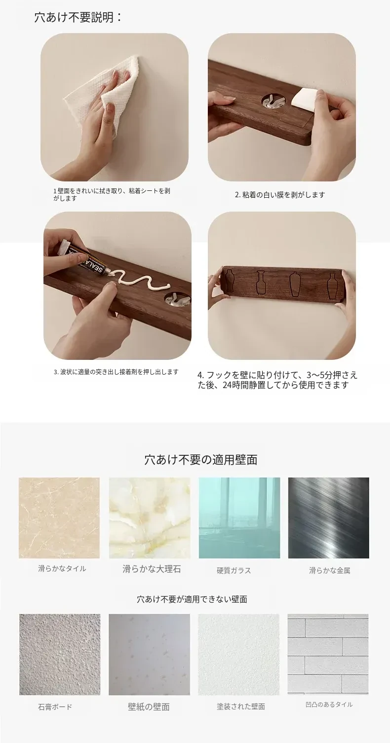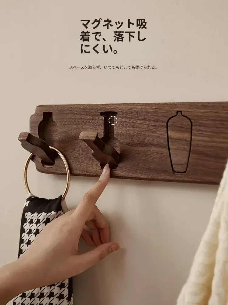 木町の玄関壁掛けフック - 強力粘着で簡単取り付け、穴あけ不要!高級天然木製で、衣服や帽子をしっかり支える耐荷重設計。洗練されたデザインで玄関をスタイリッシュに演出します!