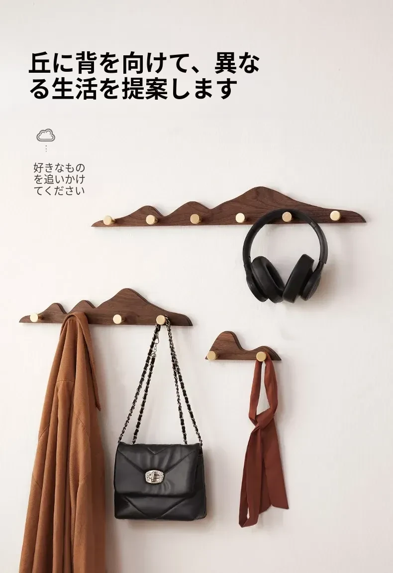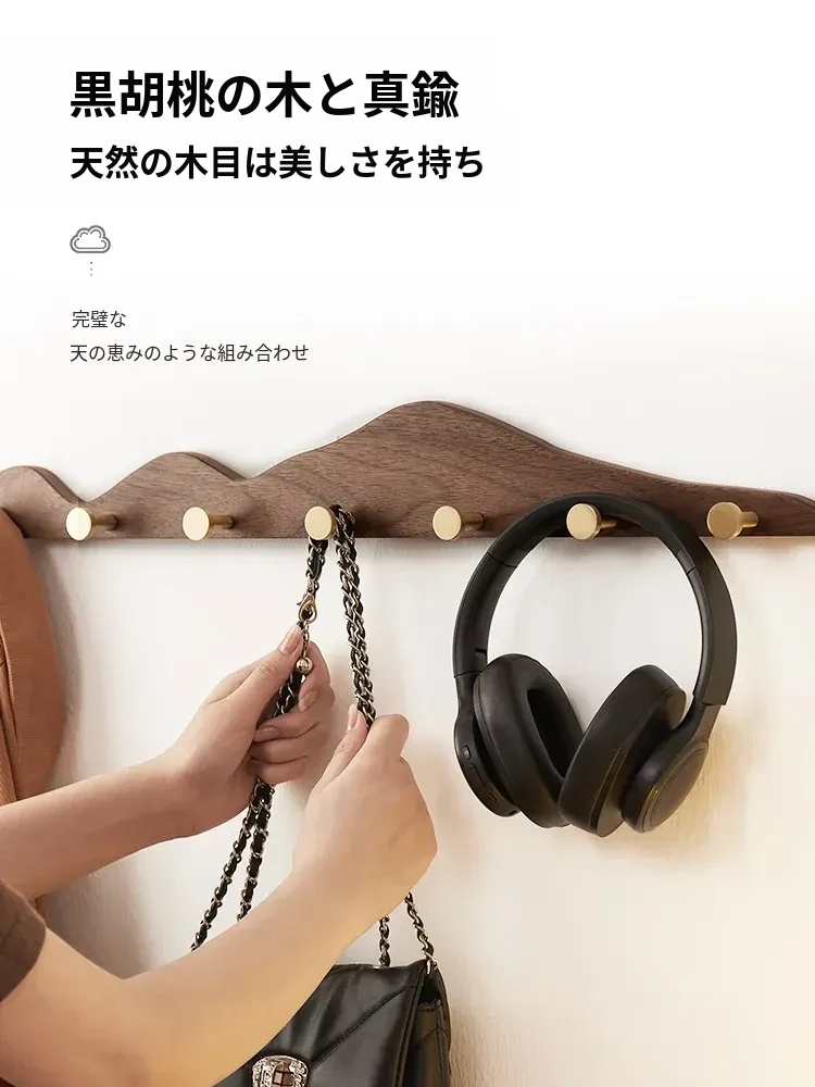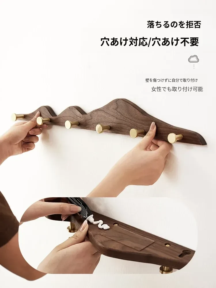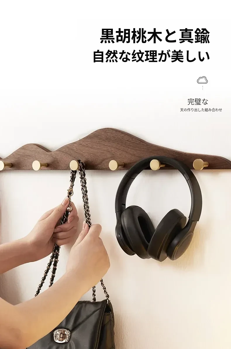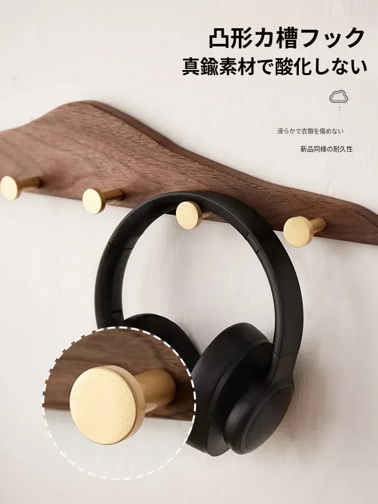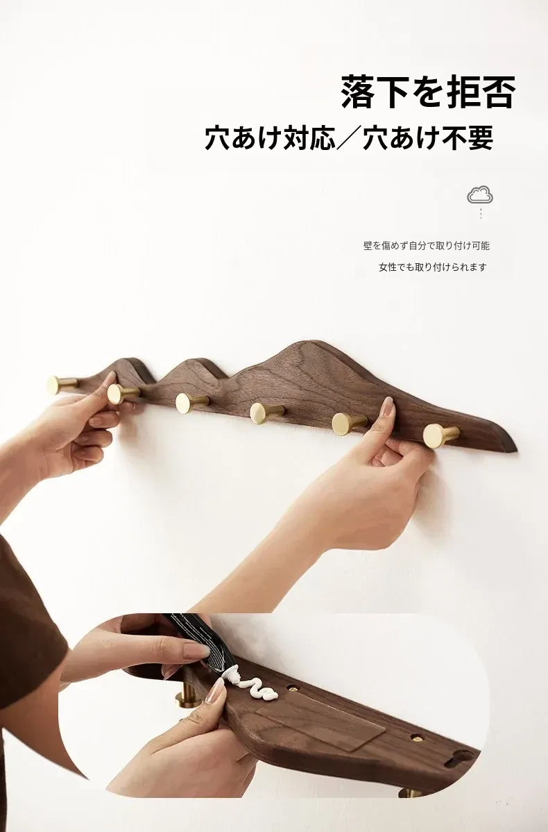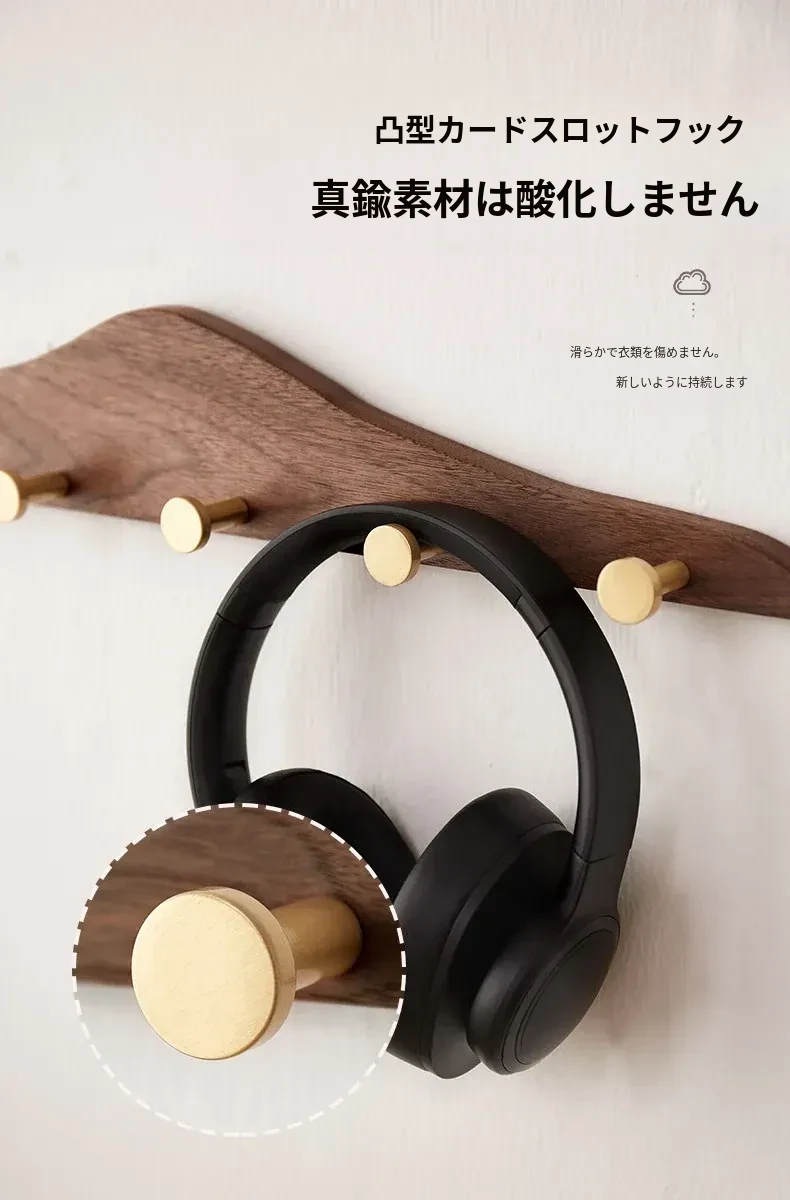 穴あけ不要の無垢材コートフック - 黄銅製ロングフックで試着室やクローゼット、玄関に最適!おしゃれで便利な壁掛けハンガー、スペースを有効活用!
