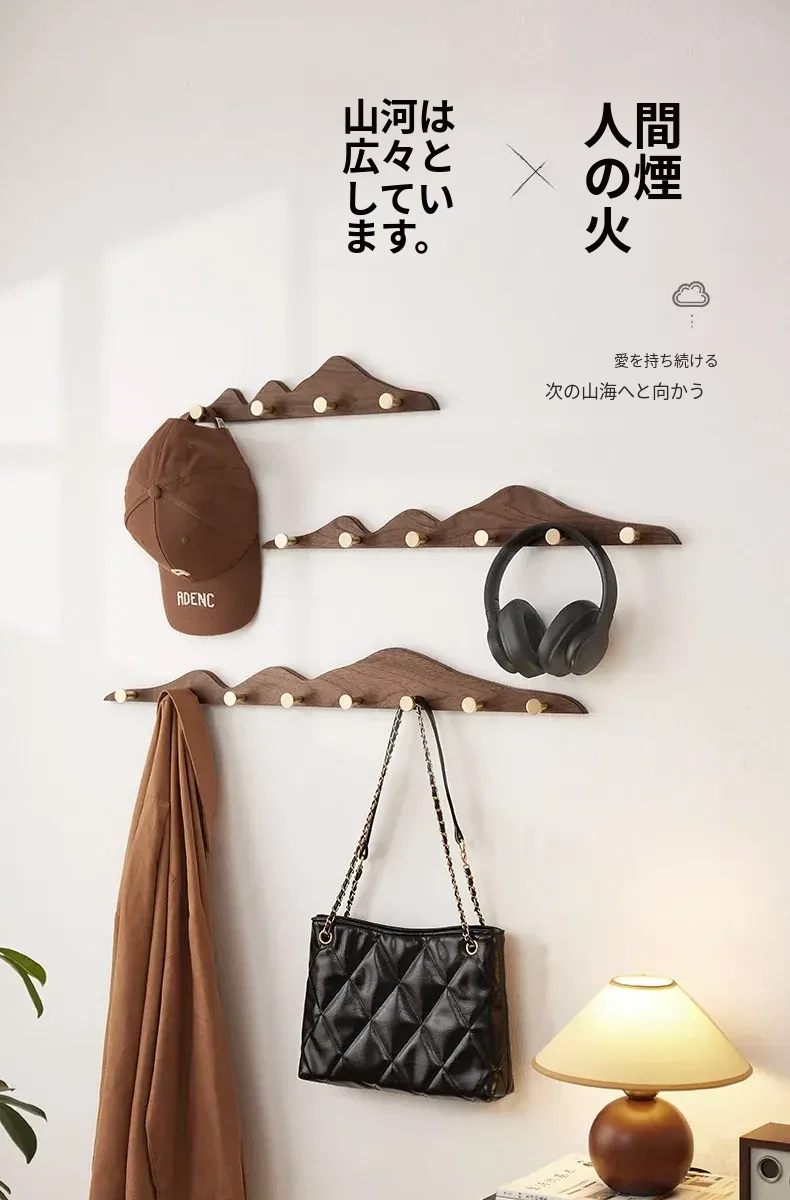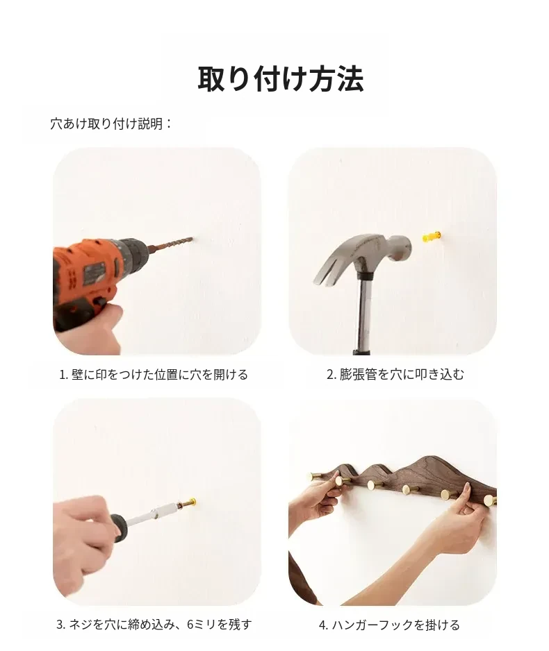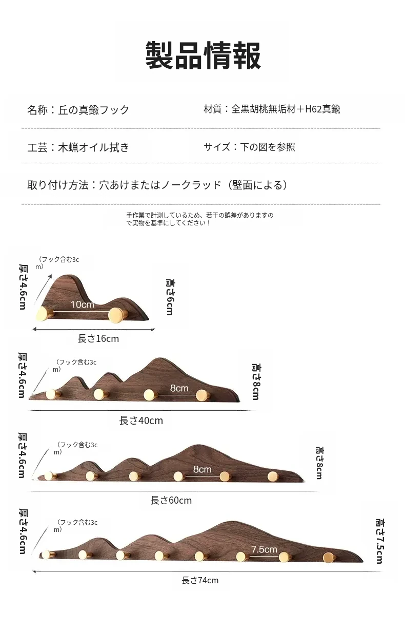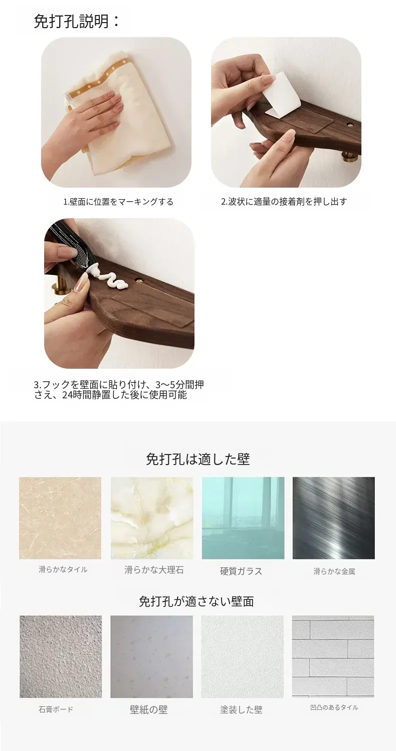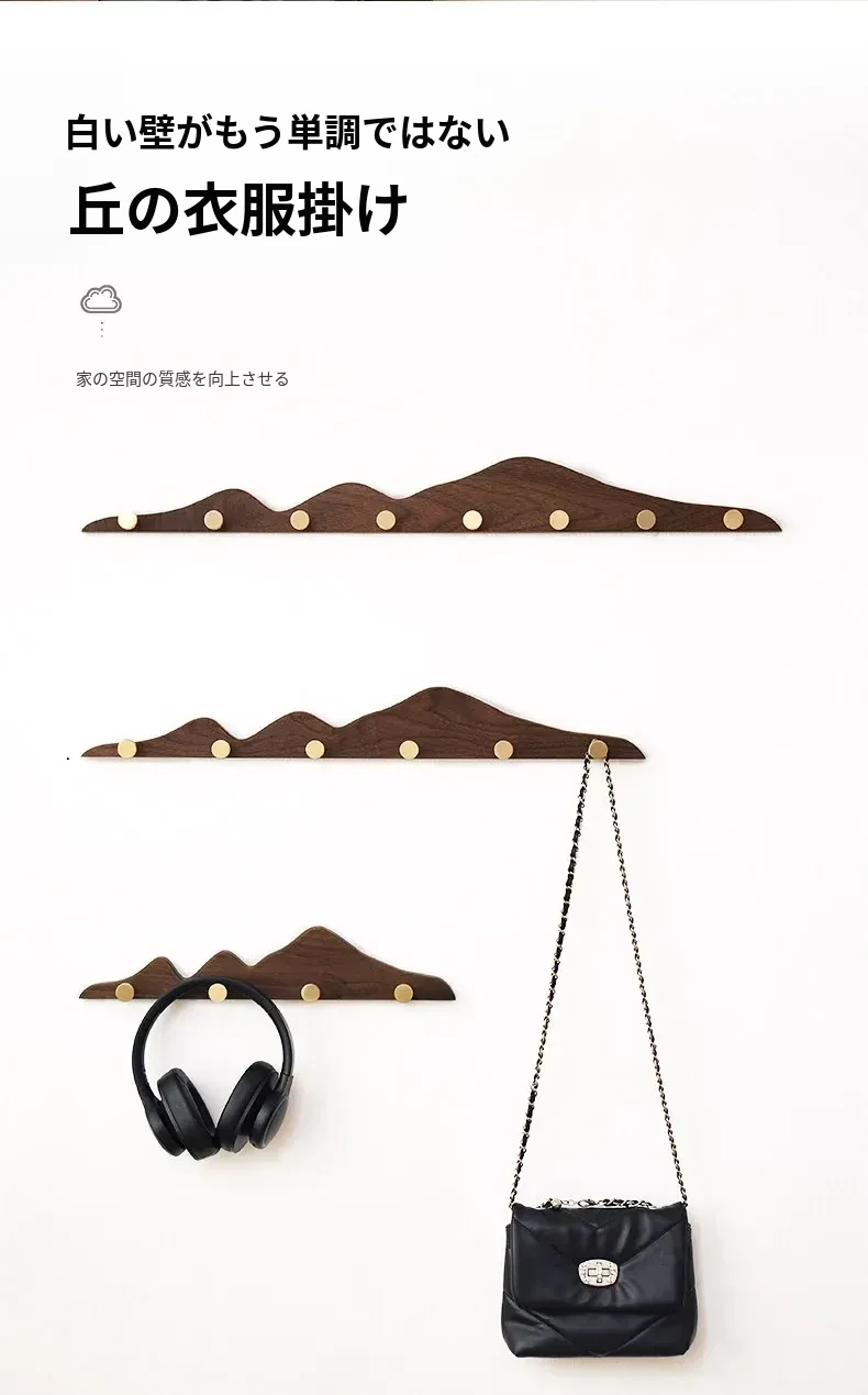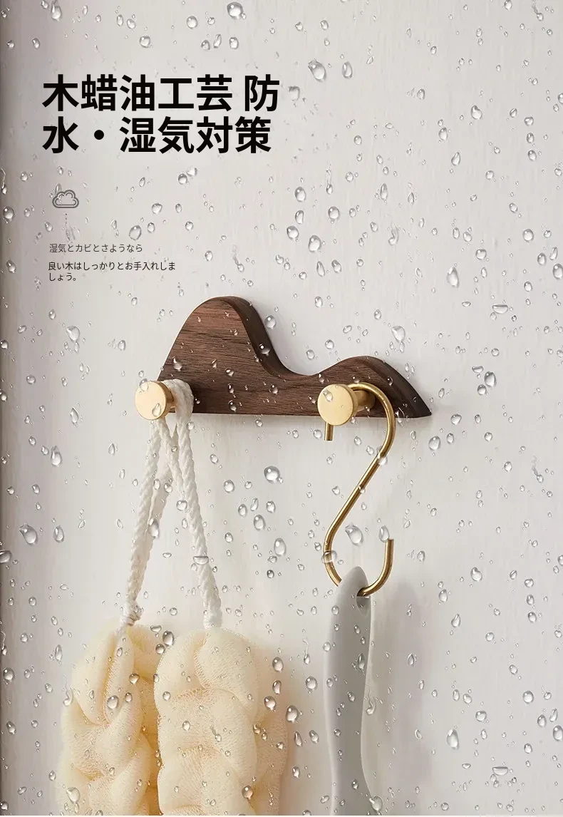 穴あけ不要の無垢材コートフック - 黄銅製ロングフックで試着室やクローゼット、玄関に最適!おしゃれで便利な壁掛けハンガー、スペースを有効活用!