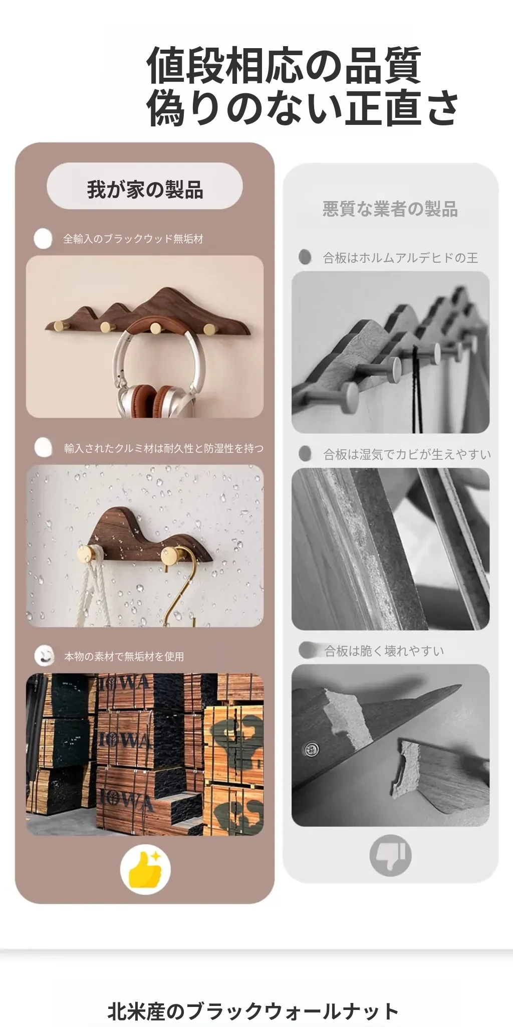 北米ブラックウォールナット4フック