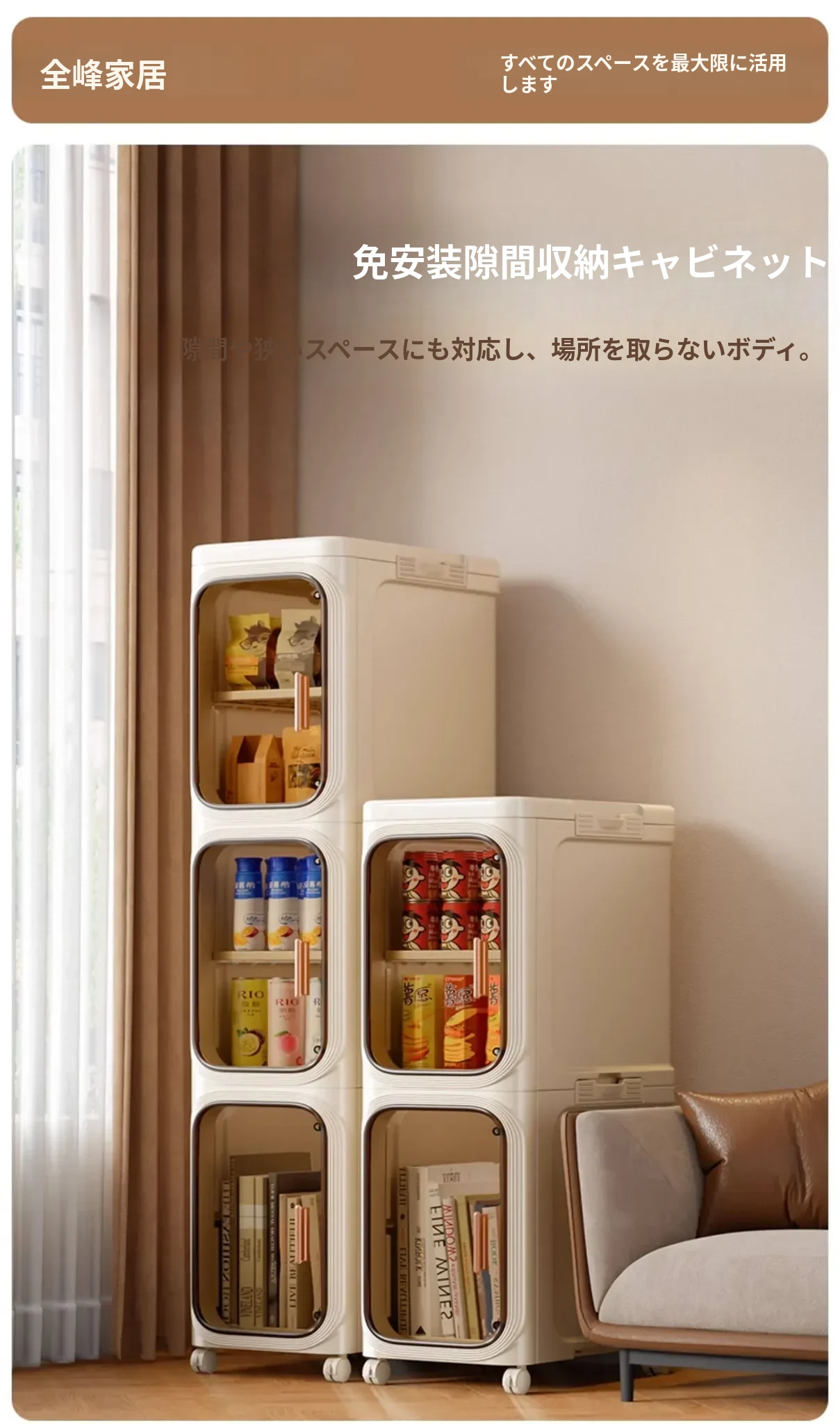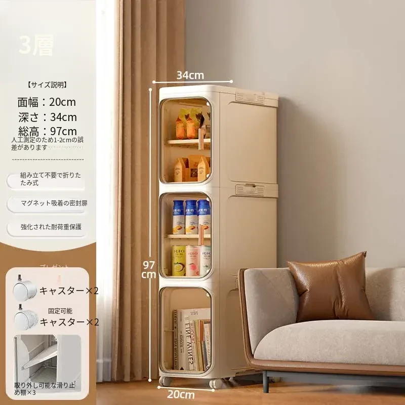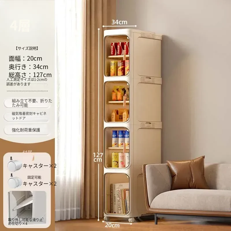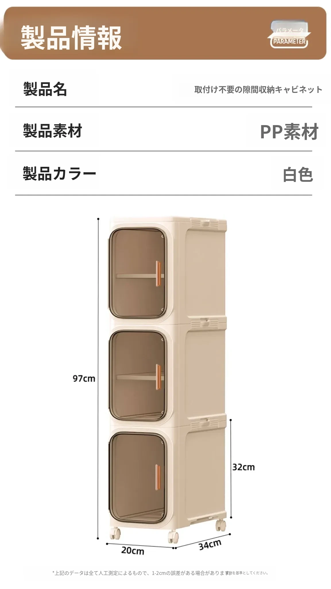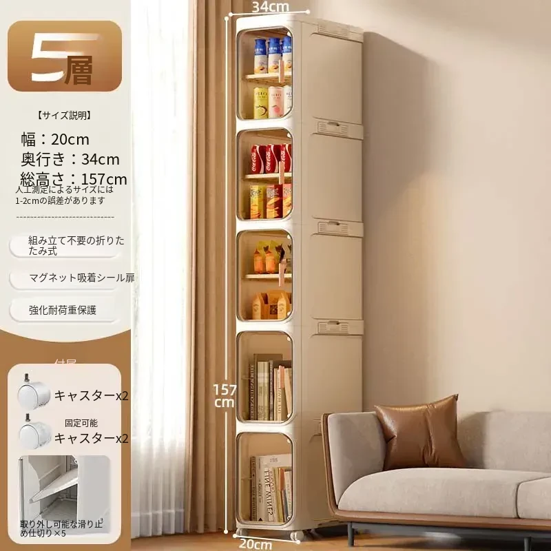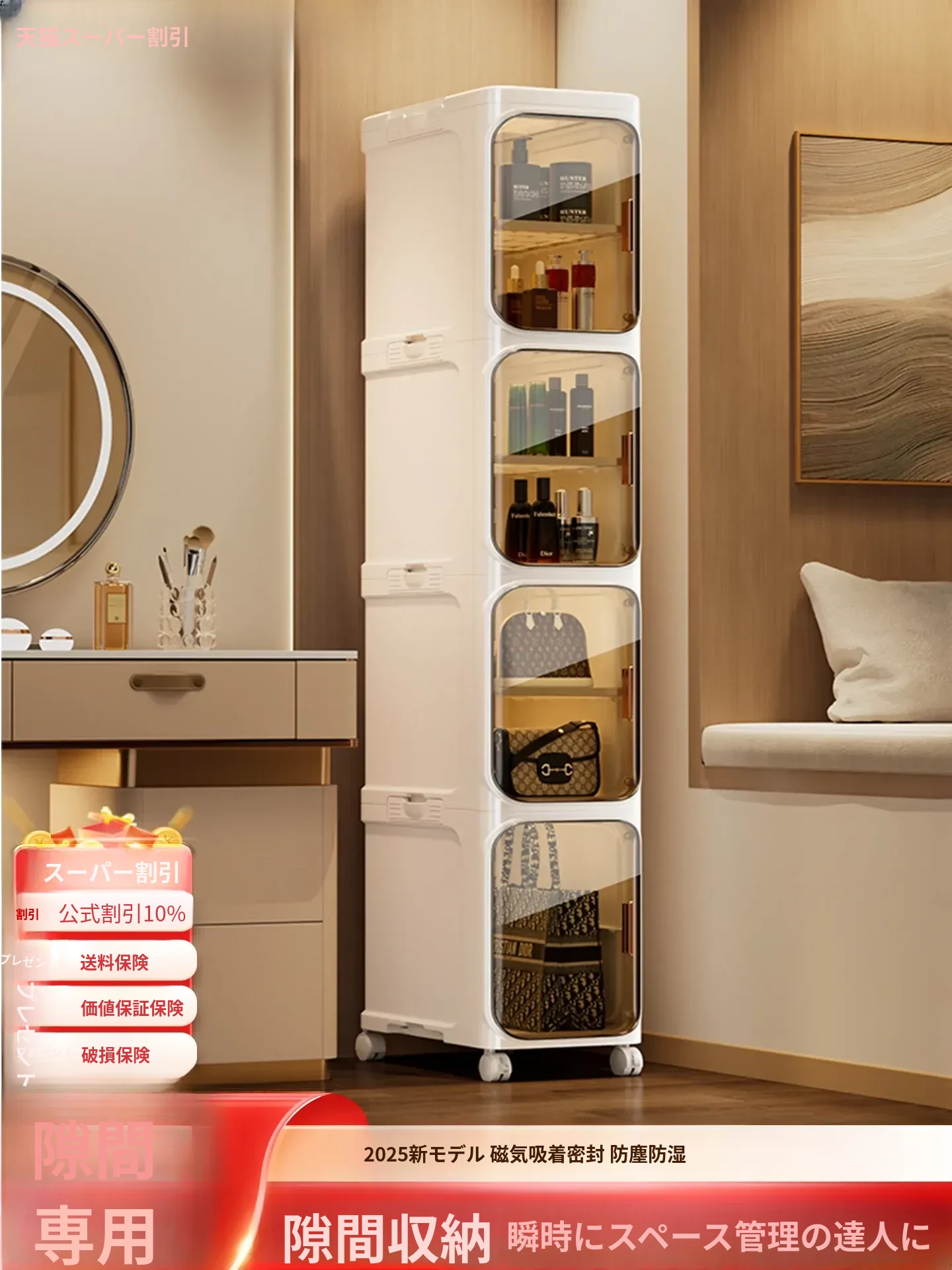 簡単設置!隙間収納キャビネット - リビングや寝室に最適なスリムなデザインのプラスチック製サイドストレージ。省スペースでおしゃれな収納を実現!