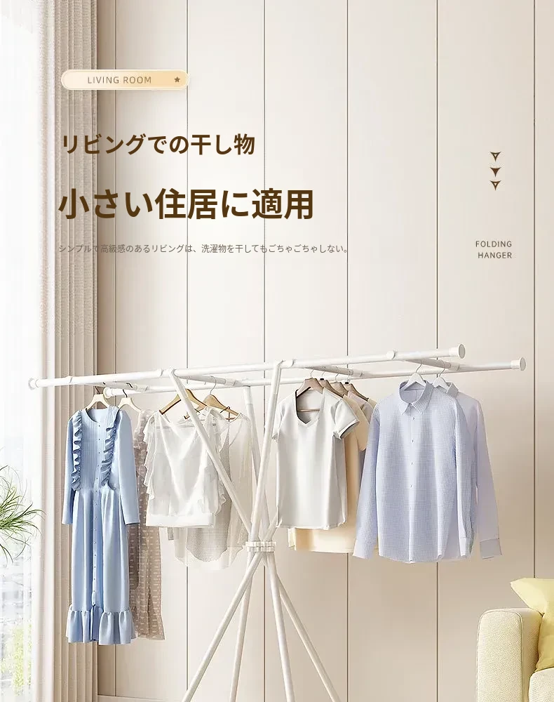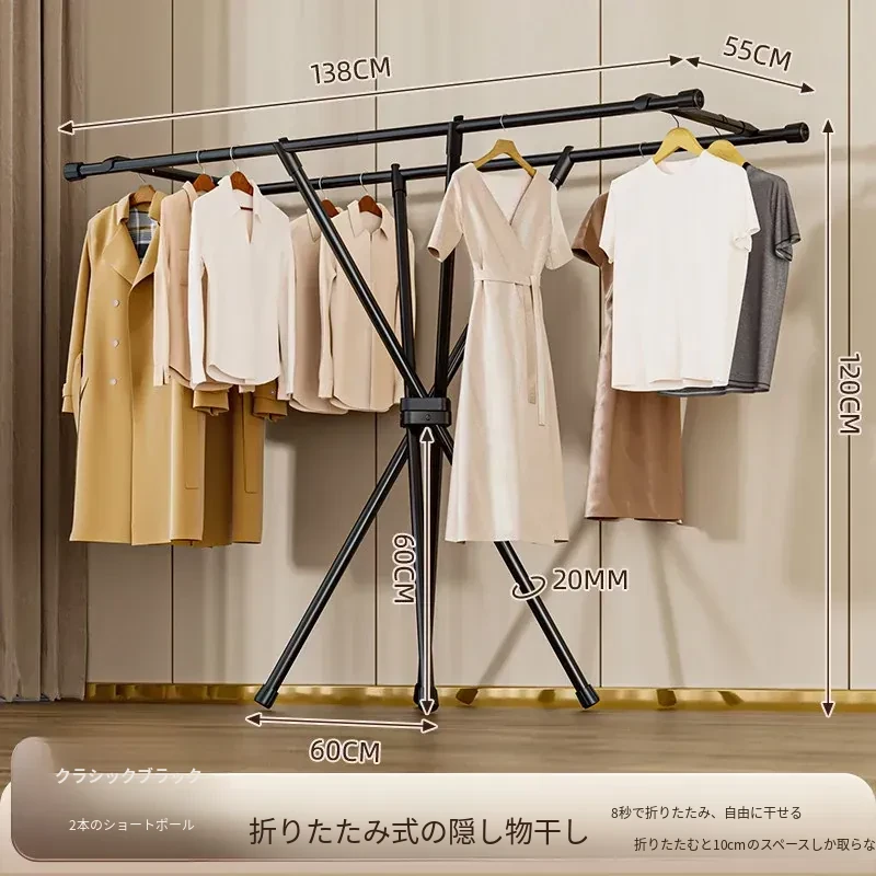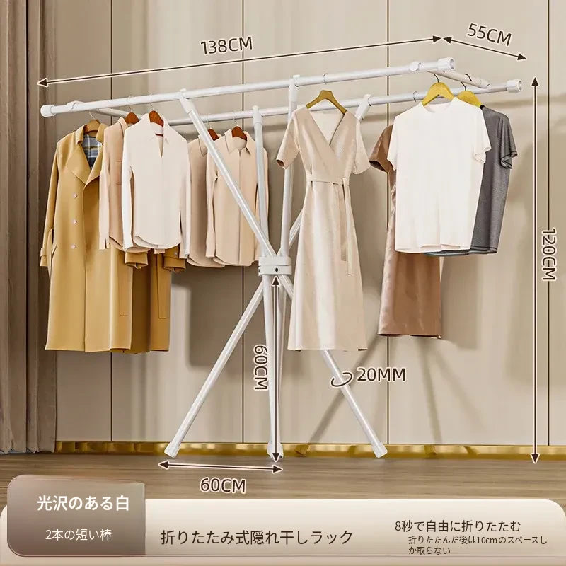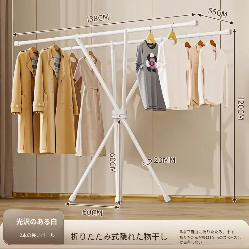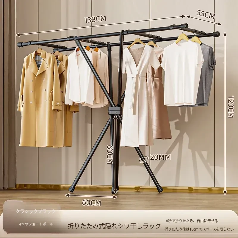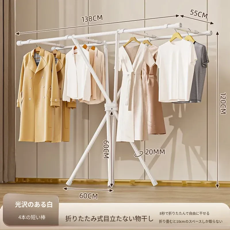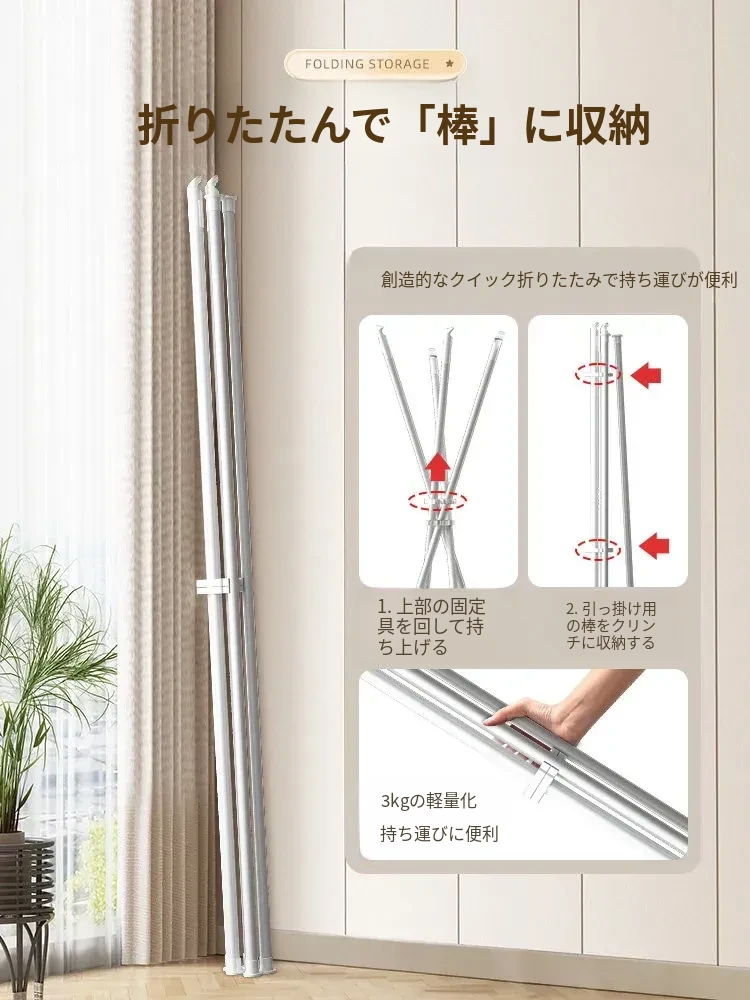 折りたたみ式室内用ハンガーラック - スペースを取らず、小型アパートやバルコニーに最適!衣類や布団を快適に干せる、便利でスタイリッシュなアイテムです。
