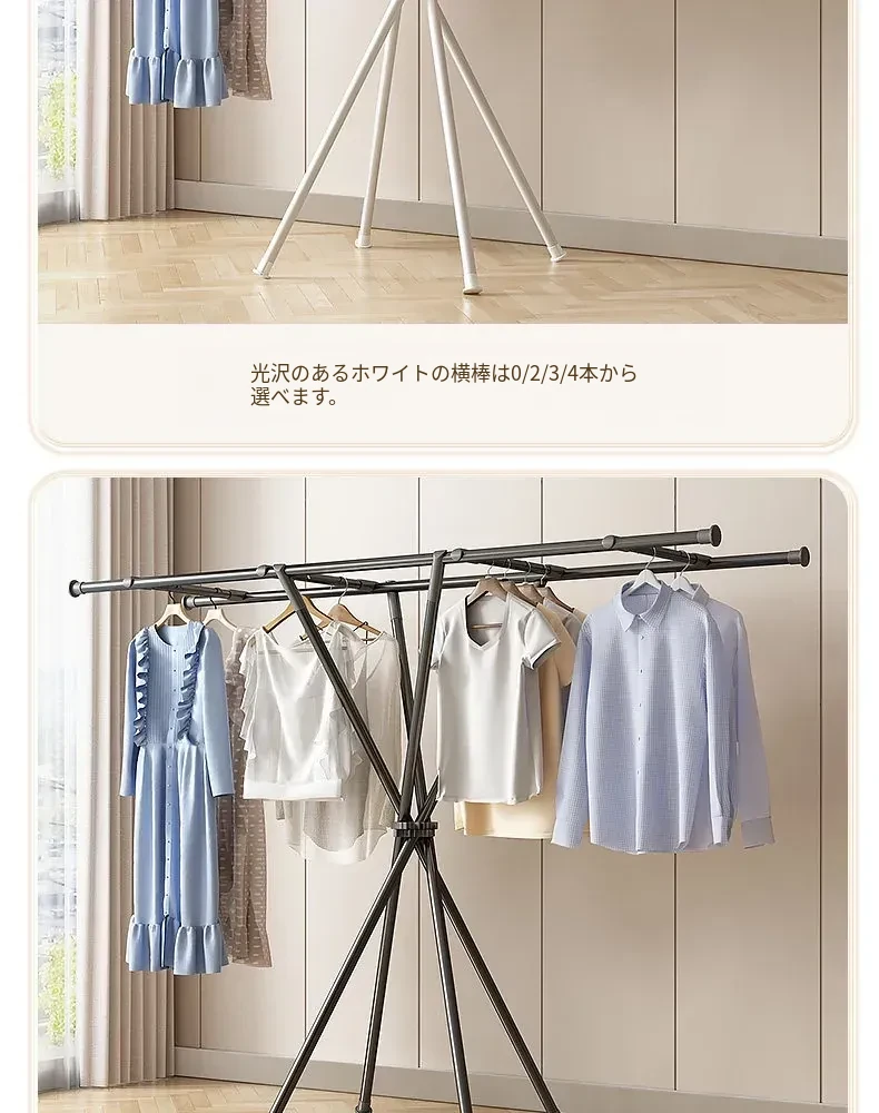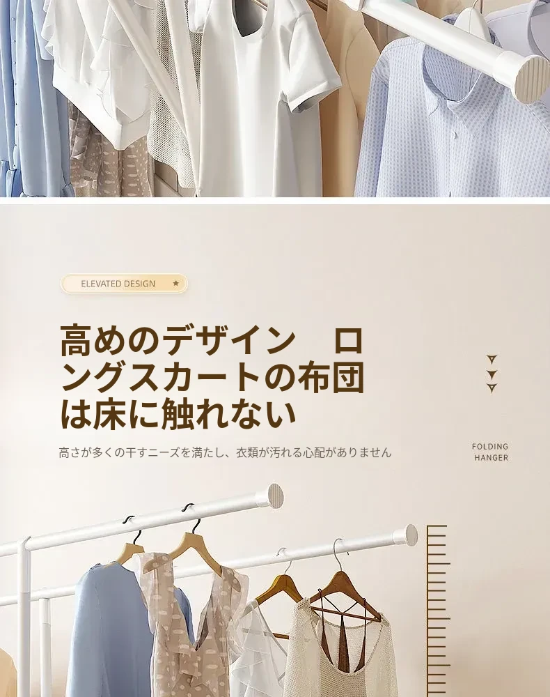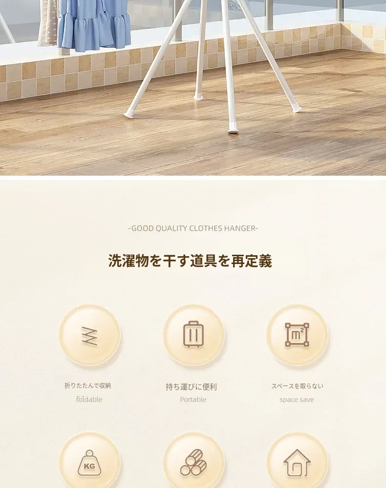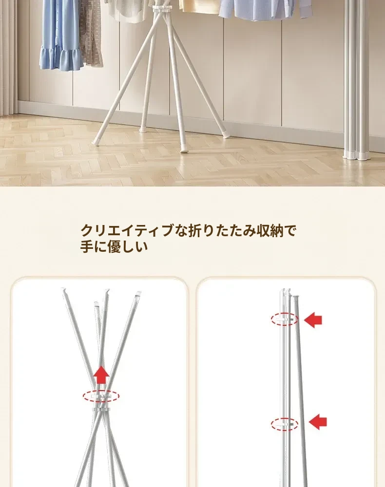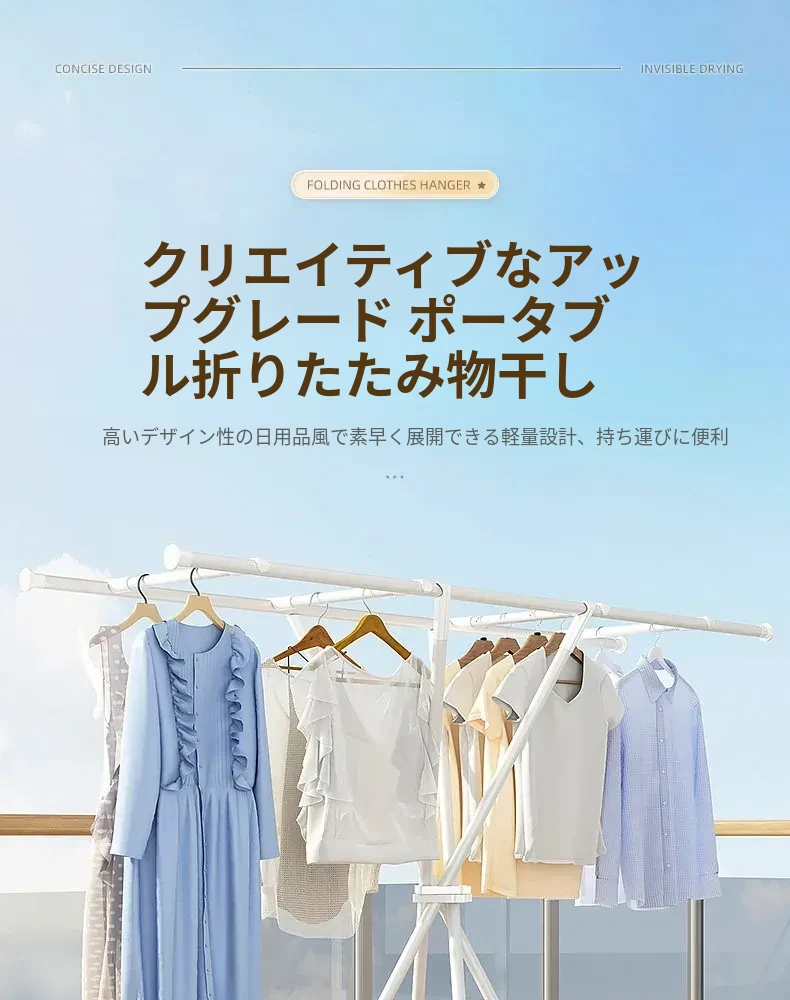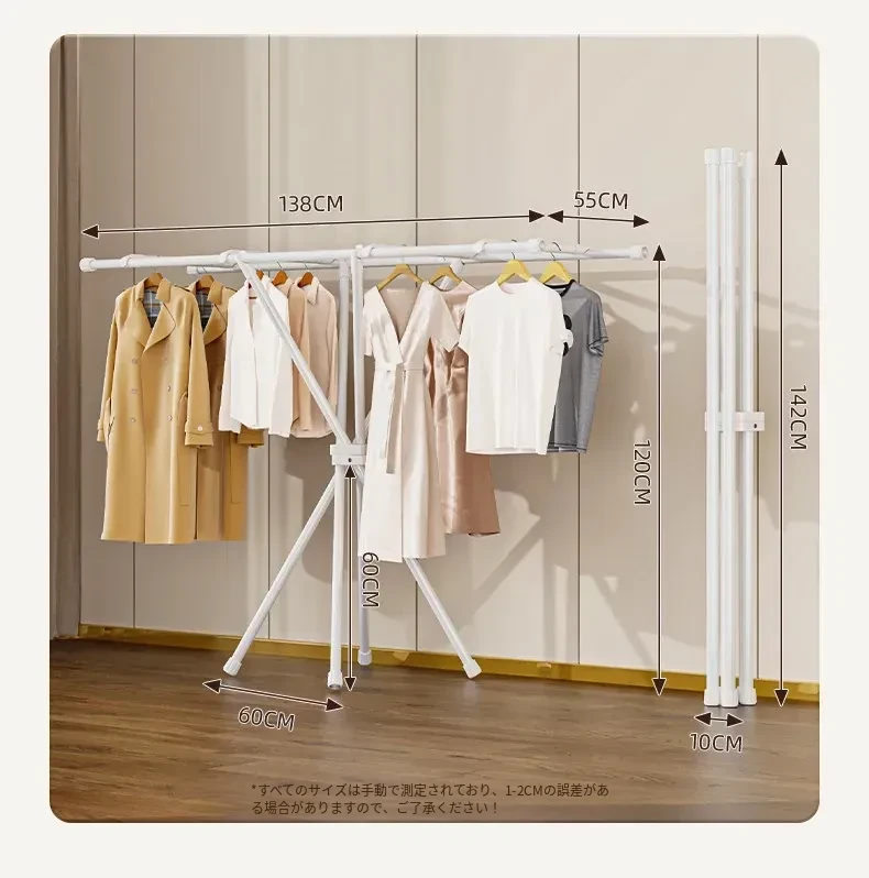 折りたたみ式室内用ハンガーラック - スペースを取らず、小型アパートやバルコニーに最適!衣類や布団を快適に干せる、便利でスタイリッシュなアイテムです。