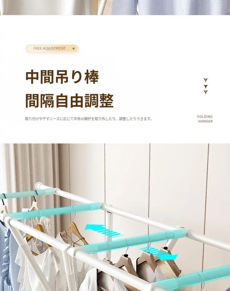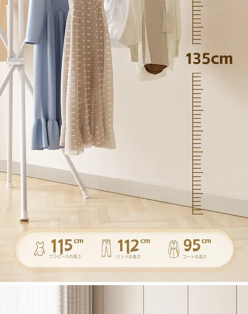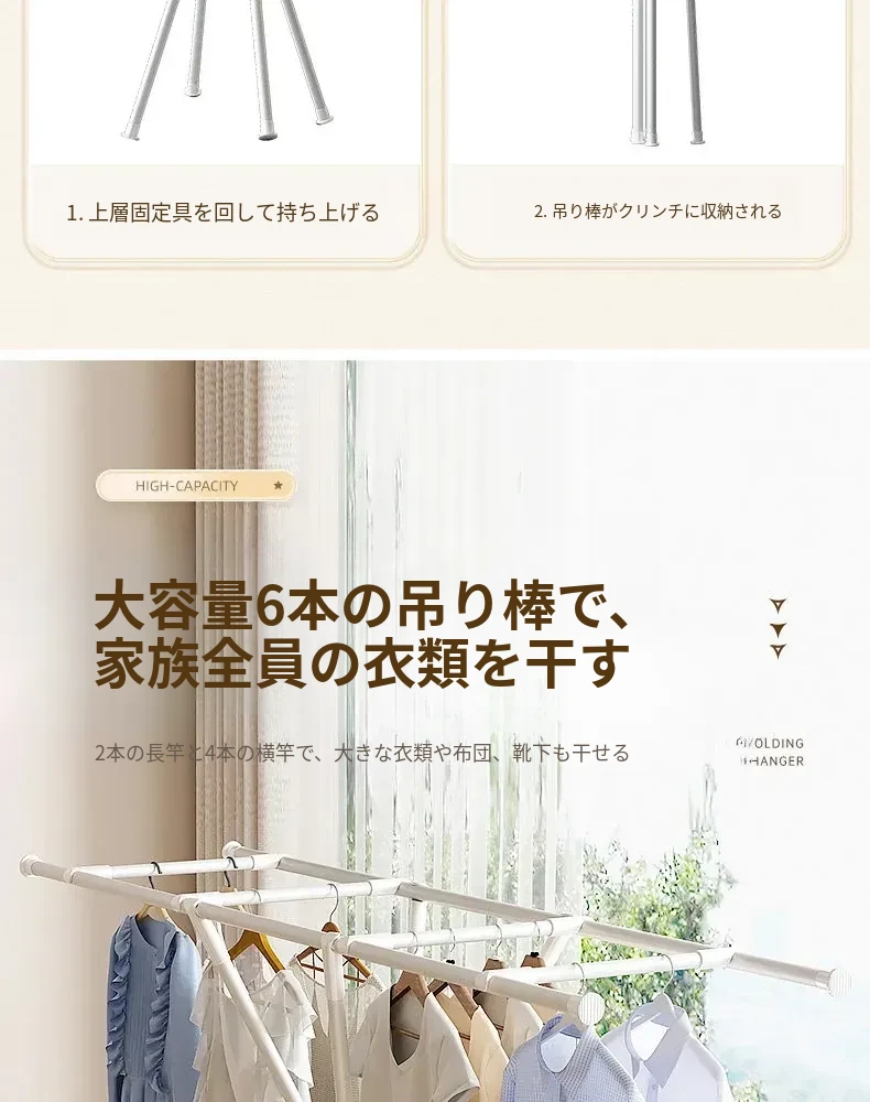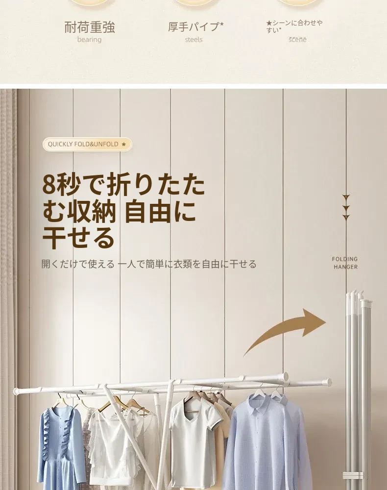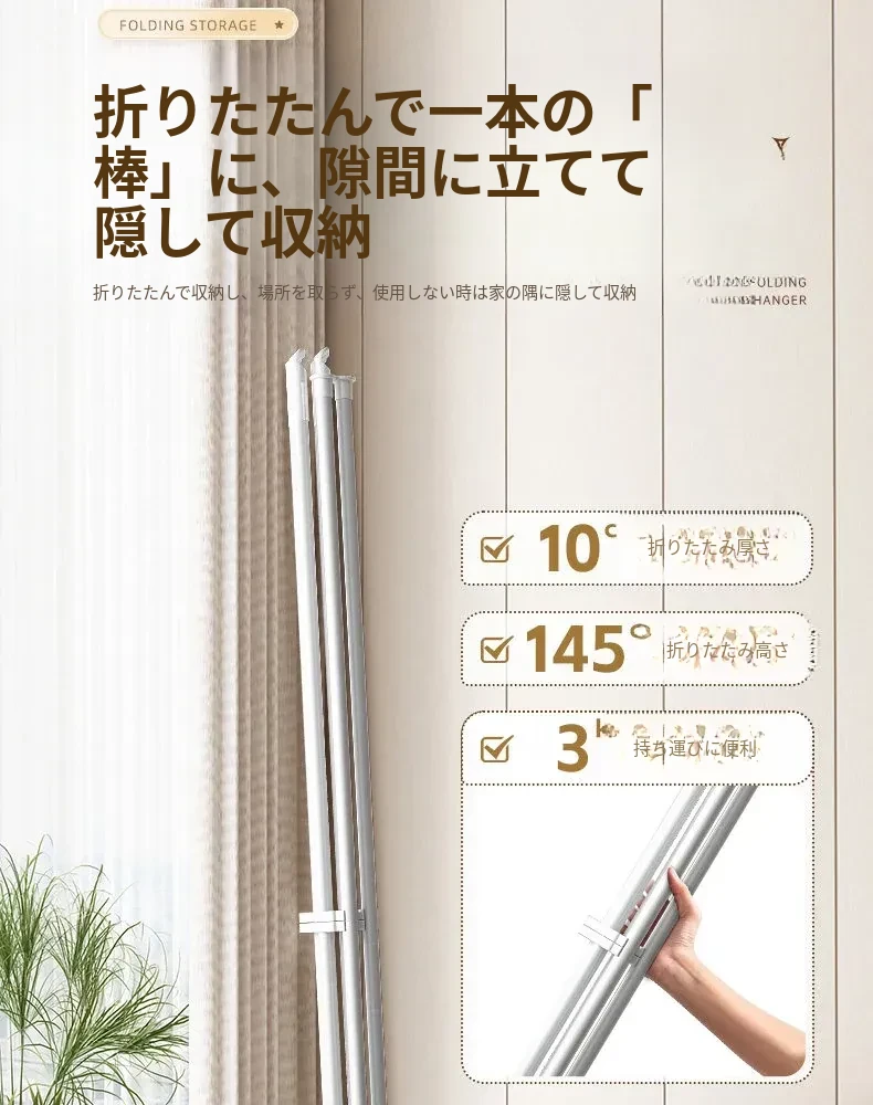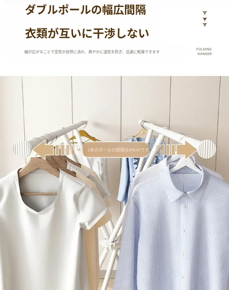 折りたたみ式室内用ハンガーラック - スペースを取らず、小型アパートやバルコニーに最適!衣類や布団を快適に干せる、便利でスタイリッシュなアイテムです。