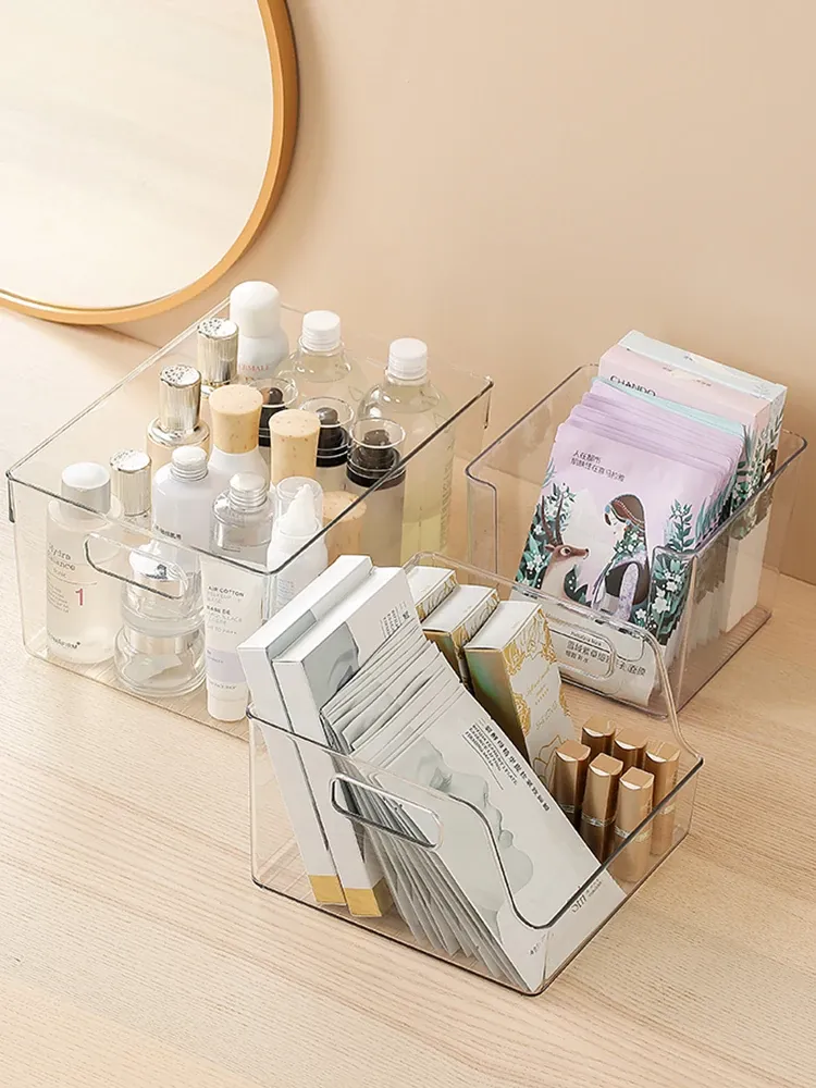透明化粧品収納ボックス - メイクマスクや小物を美しく整理!デスクやドレッサーに最適なアクリル製の小さな収納ボックス。おしゃれで機能的なアイテムで、宿舎や自宅のデスクをスッキリ整頓!