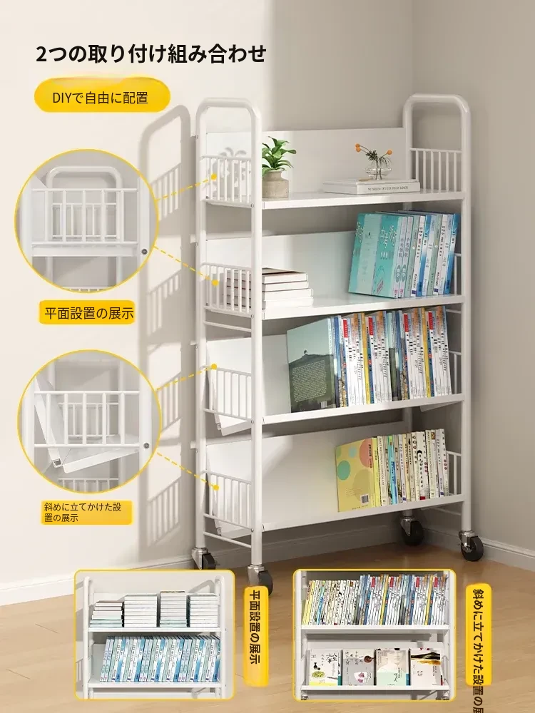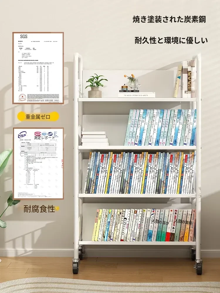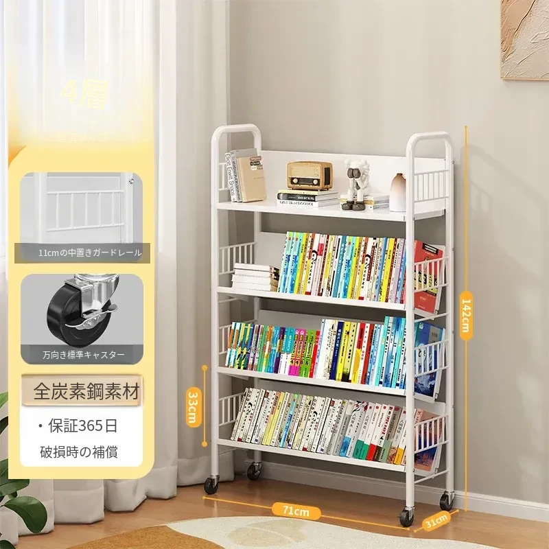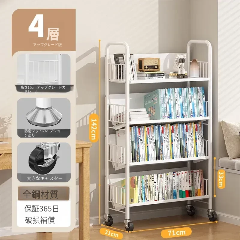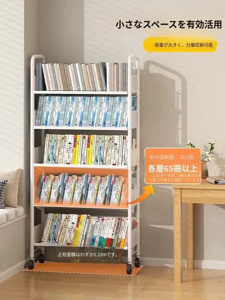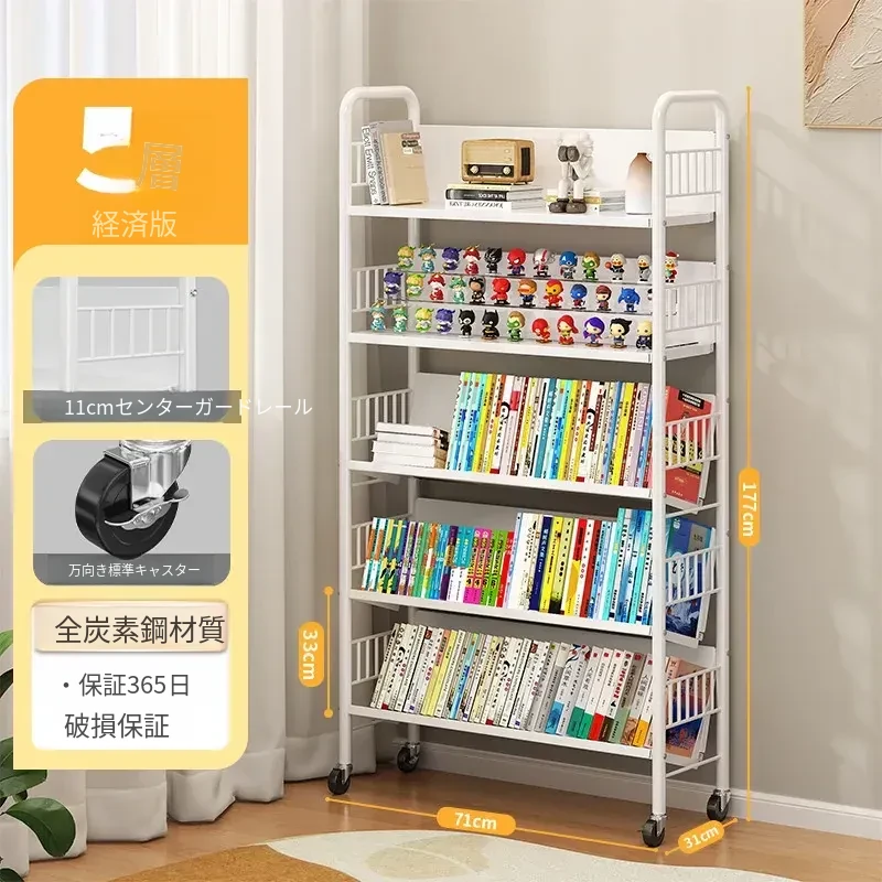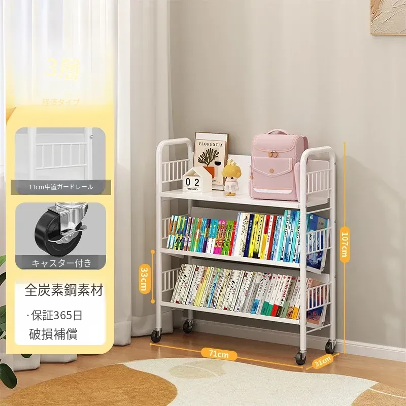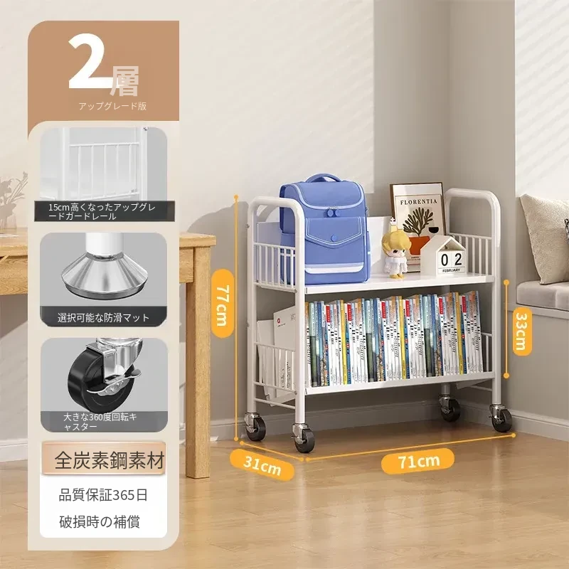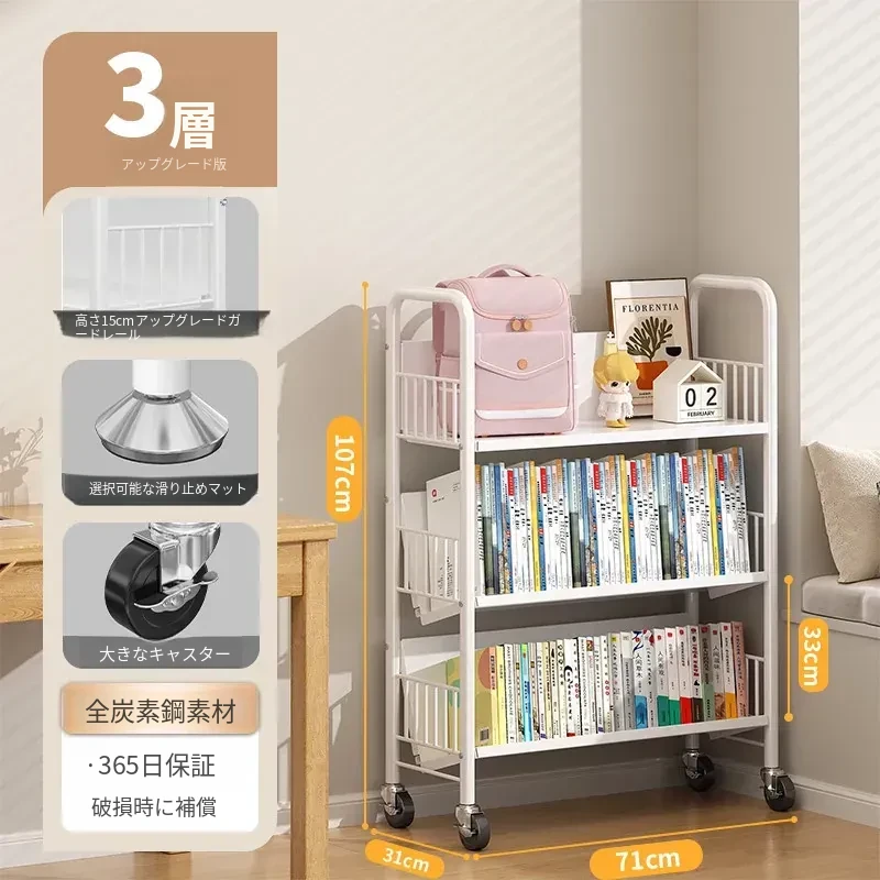 全峰多层移動式書架 - おしゃれで便利な家族向け、子供の絵本や学用品をすっきり収納!簡単に移動できるデザインで、どこでも使える理想的な収納棚。