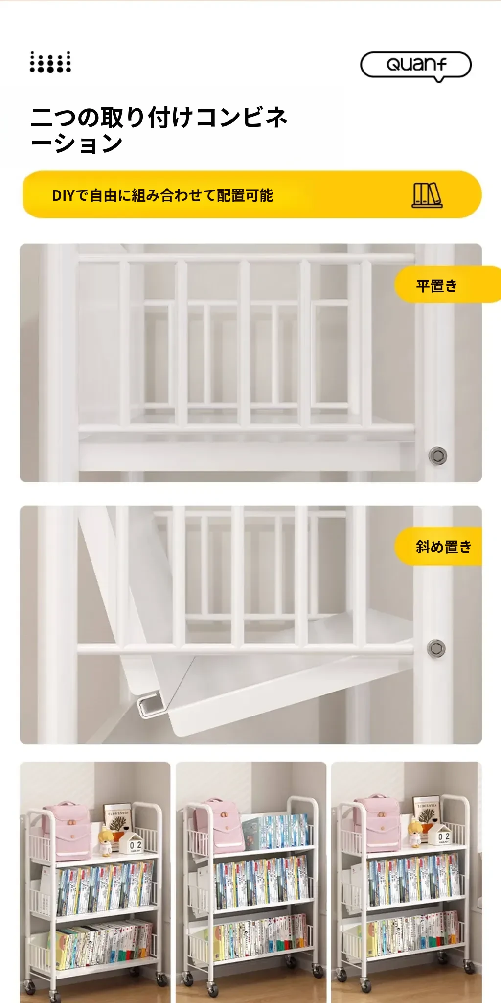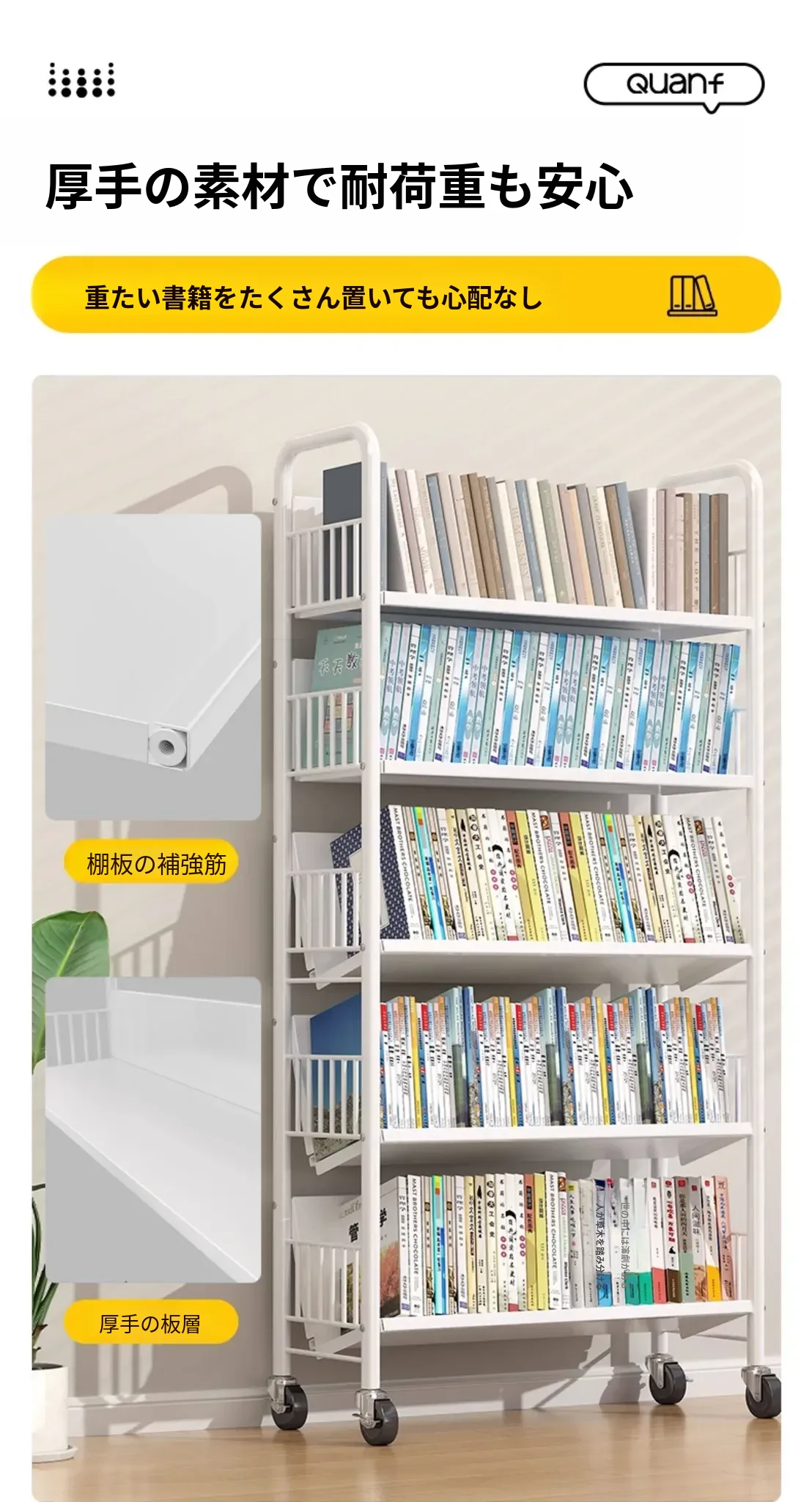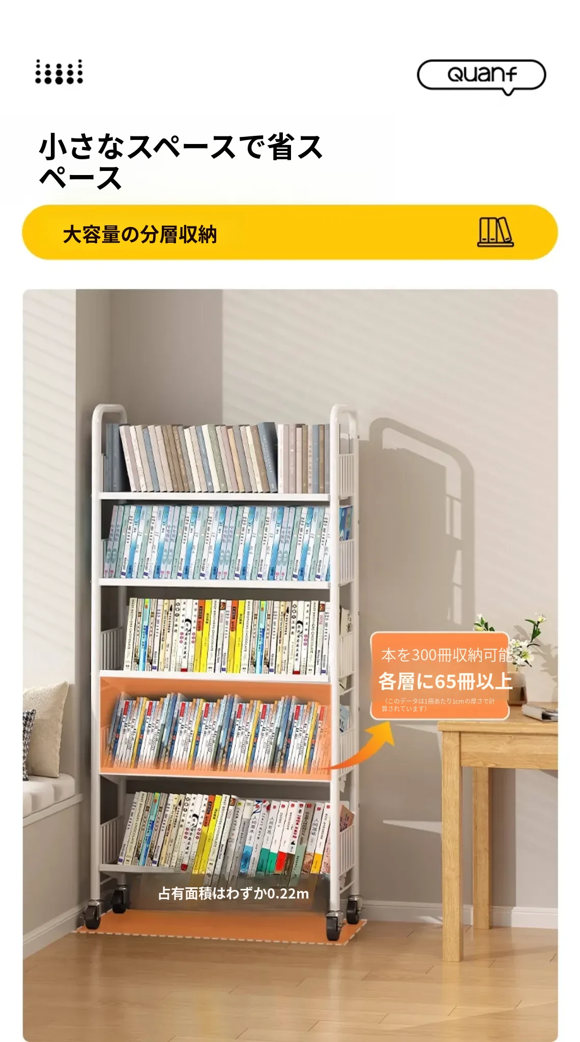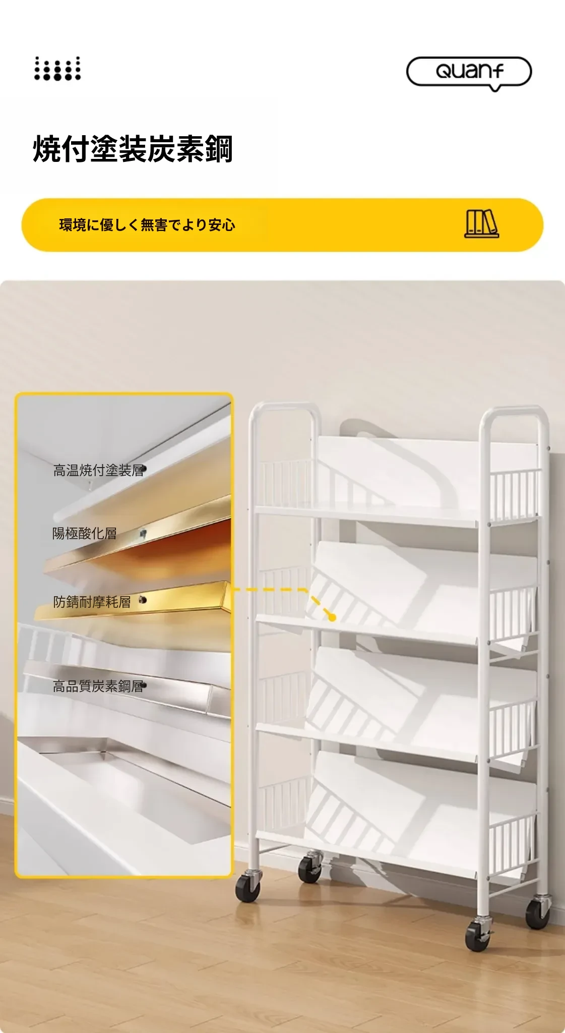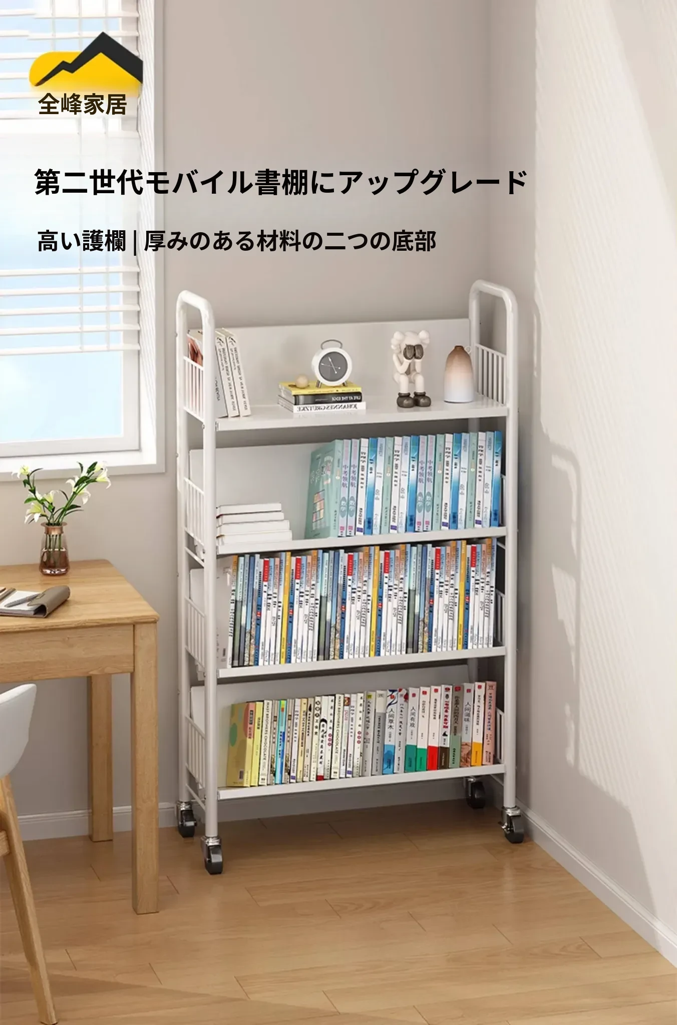 全峰多层移動式書架 - おしゃれで便利な家族向け、子供の絵本や学用品をすっきり収納!簡単に移動できるデザインで、どこでも使える理想的な収納棚。