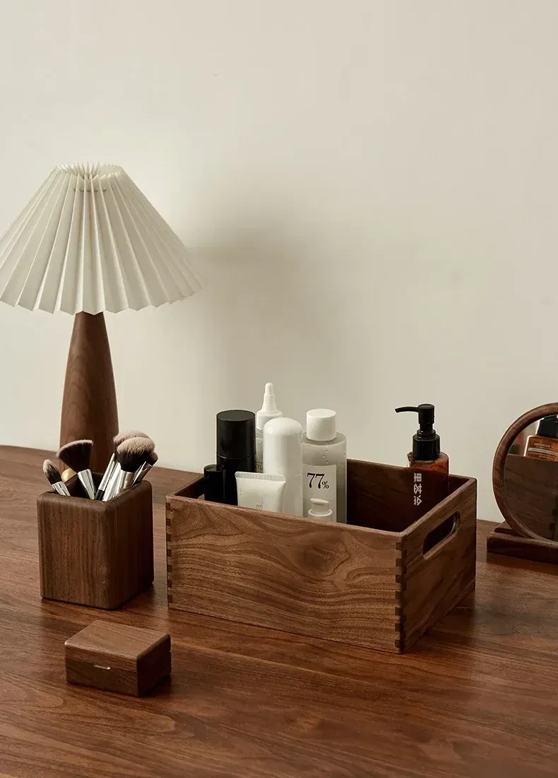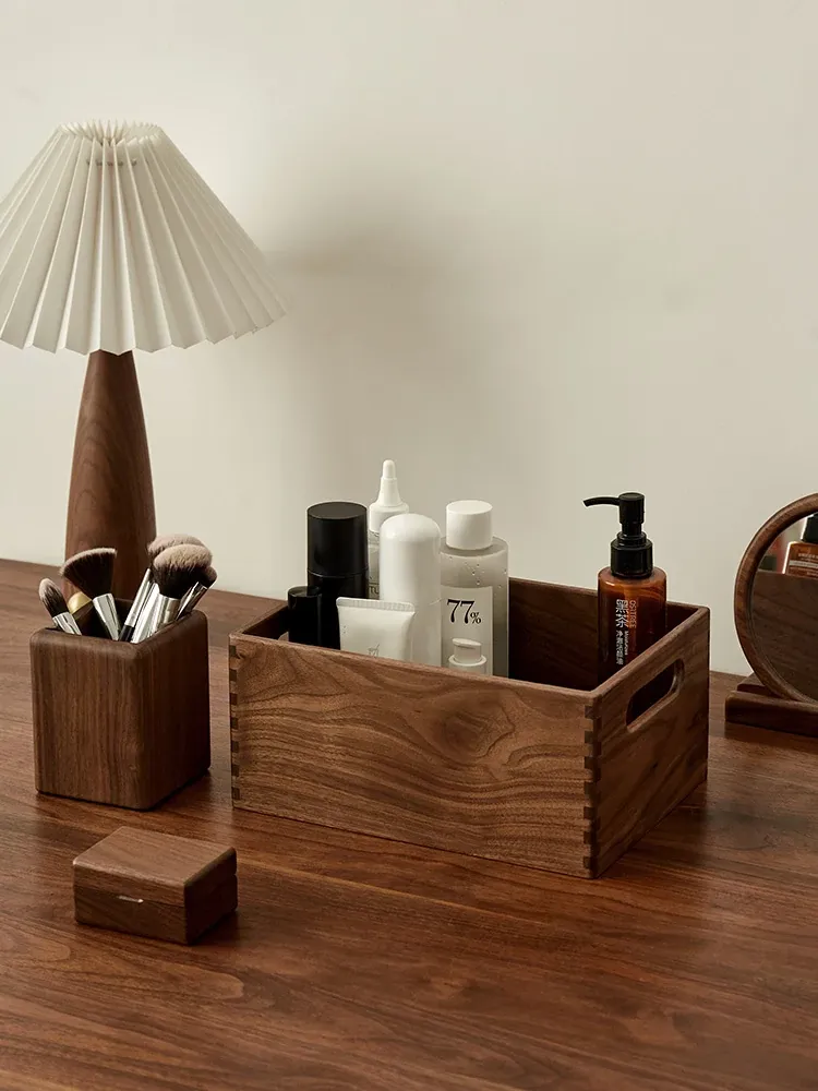 ウォールナット製デスクトップ単層収納トレイ - 香水・アロマ・化粧品整理ボックス、玄関の小物や鍵もスッキリ整理!エレガントなデザインでお部屋をおしゃれに演出。