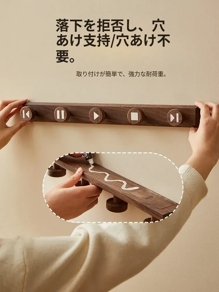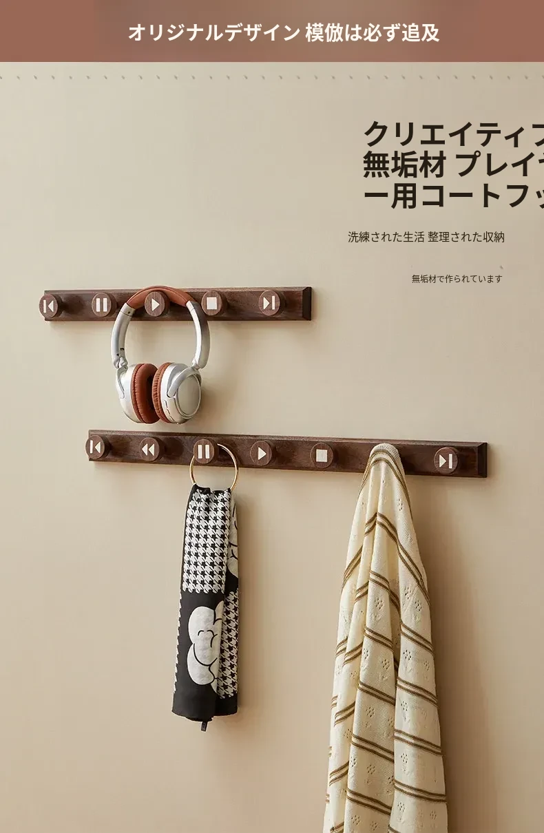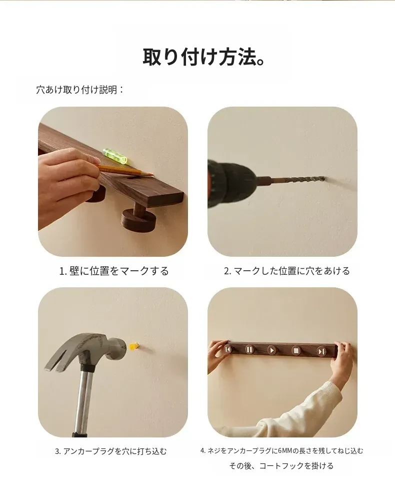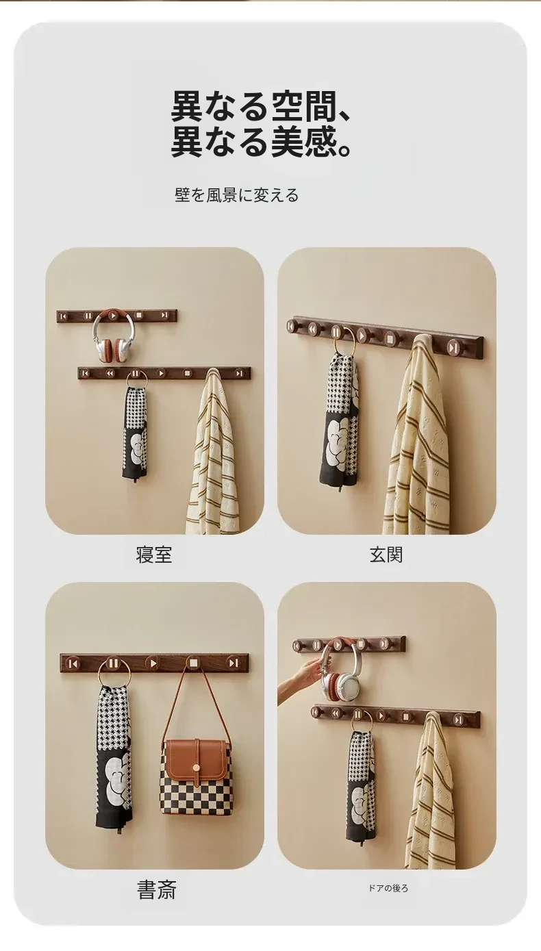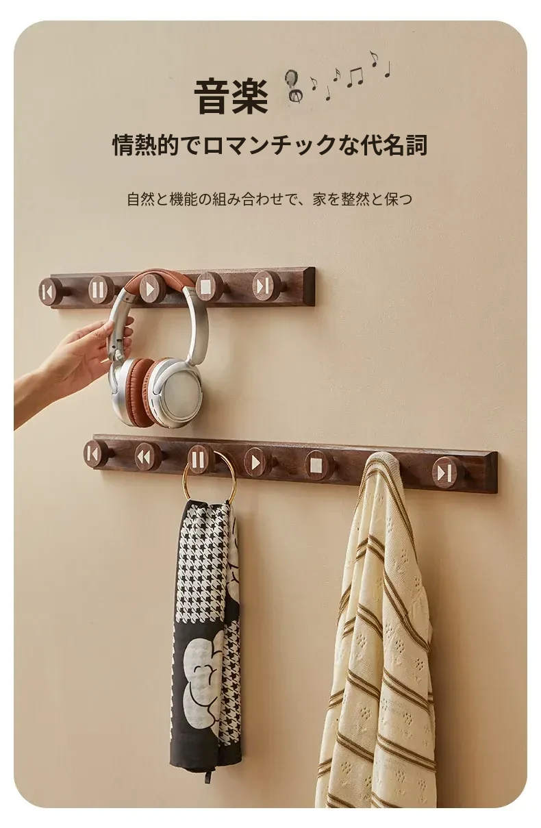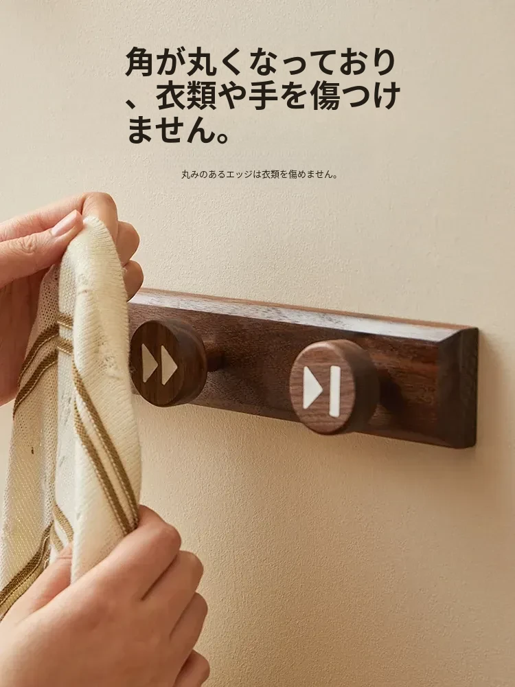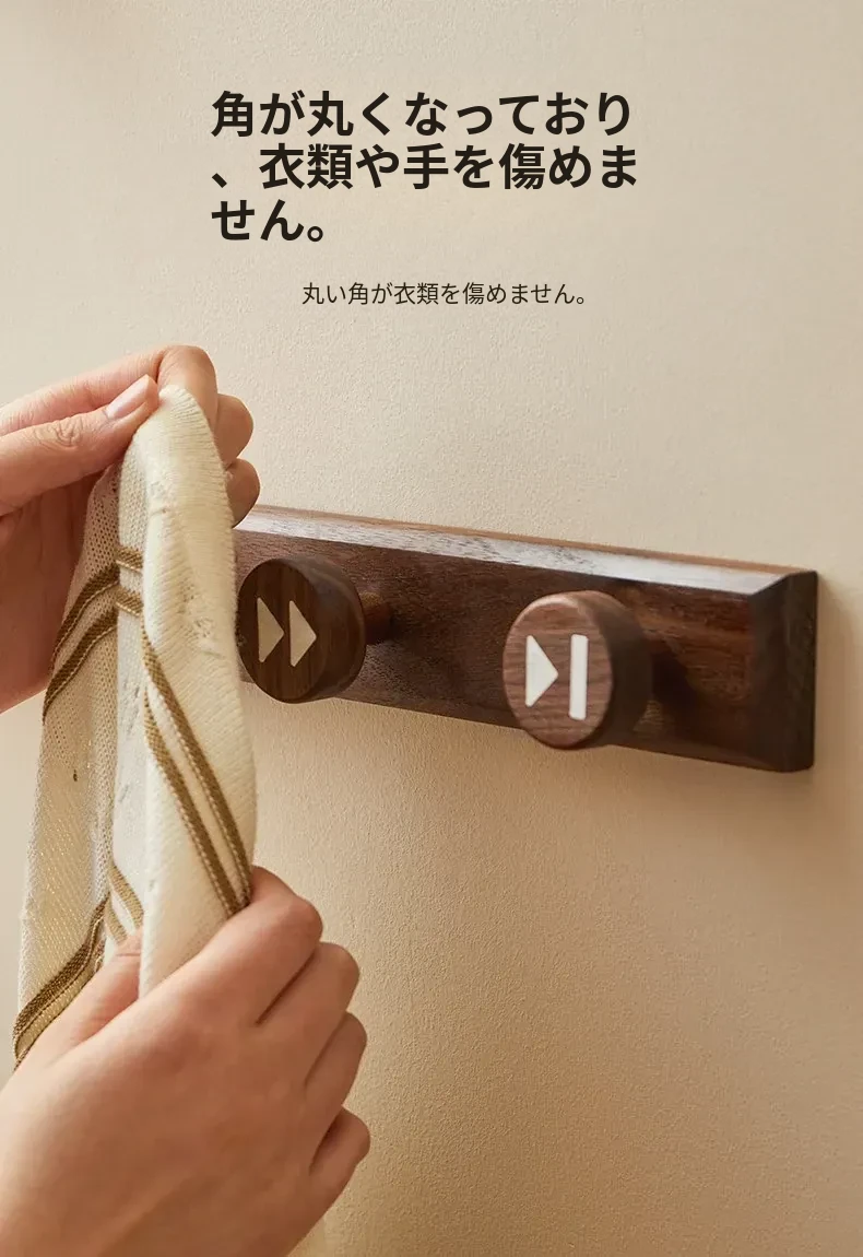 木町の玄関用壁掛けフック - 強力な粘着テープで簡単取り付け、穴あけ不要!おしゃれな天然木製で、コートや帽子をしっかり支える耐荷重設計。あなたの玄関をスッキリおしゃれに演出します!