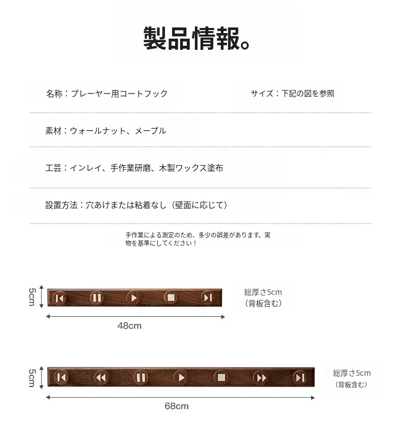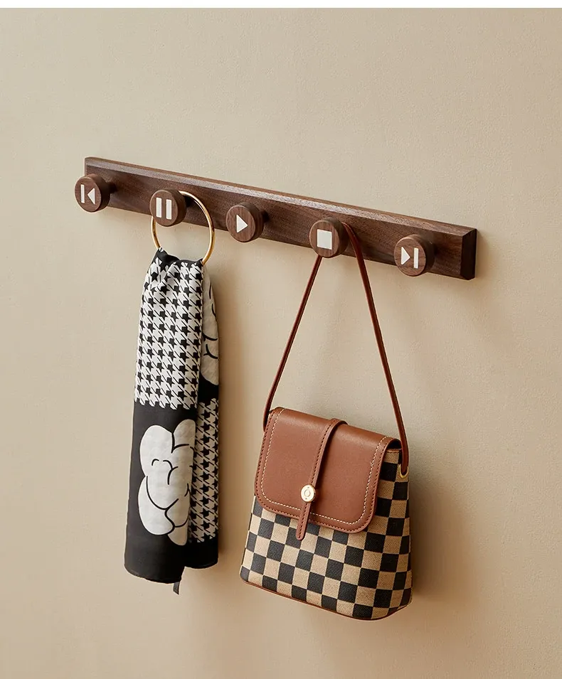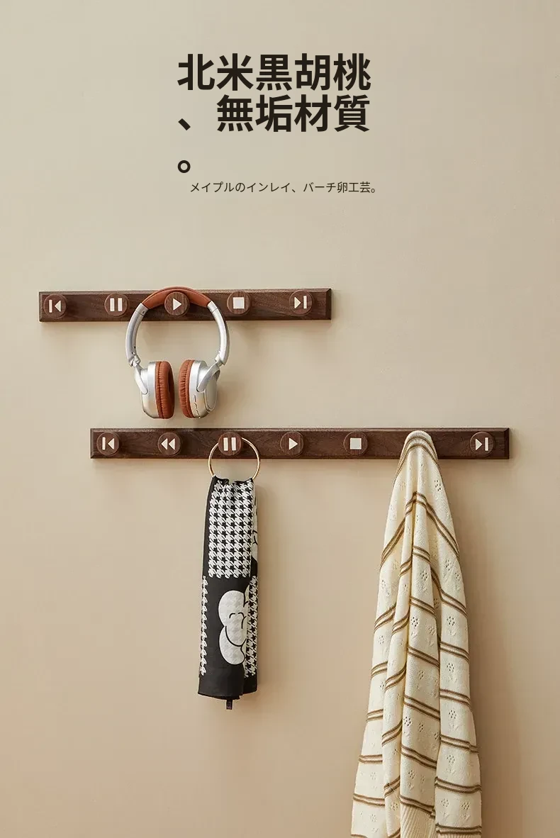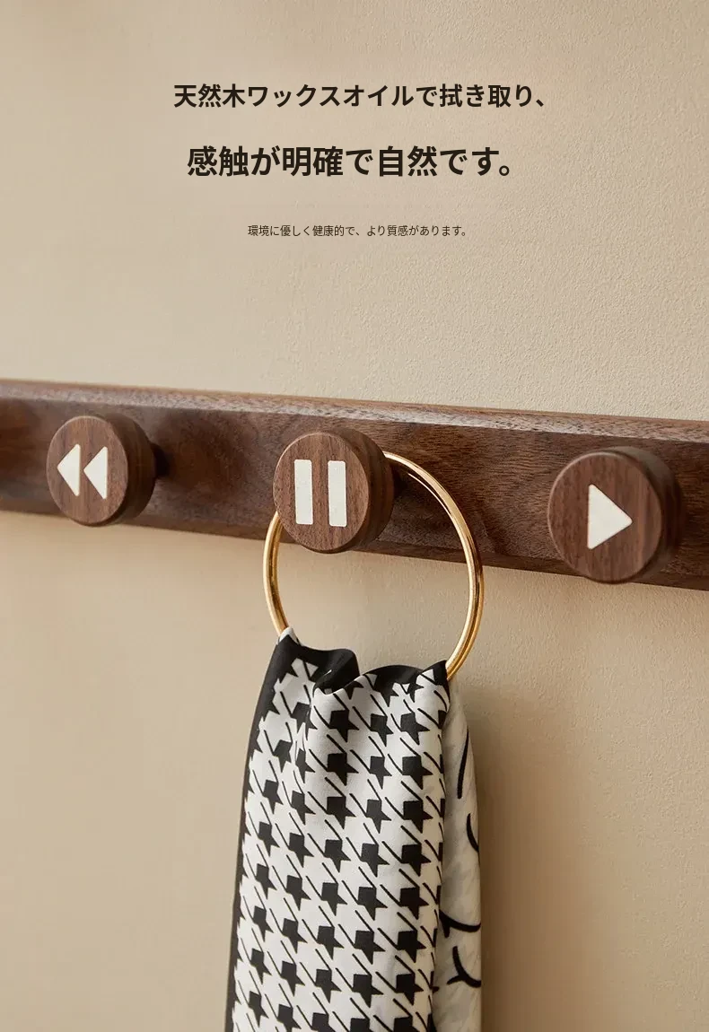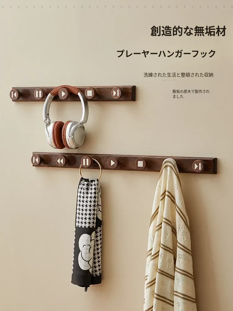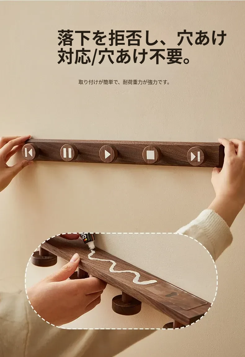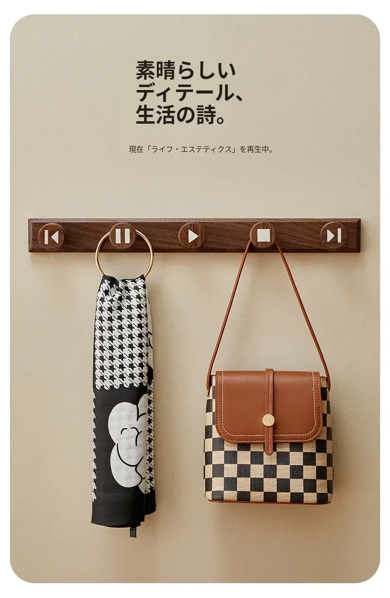 木町の玄関用壁掛けフック - 強力な粘着テープで簡単取り付け、穴あけ不要!おしゃれな天然木製で、コートや帽子をしっかり支える耐荷重設計。あなたの玄関をスッキリおしゃれに演出します!