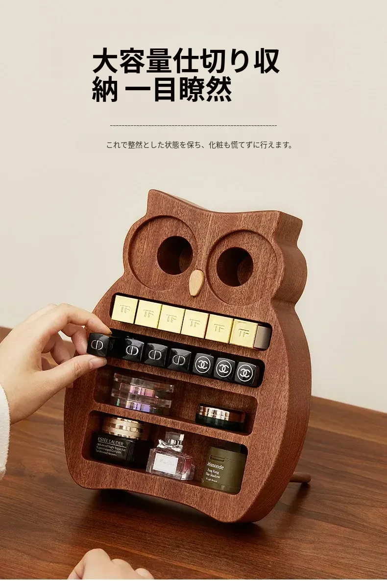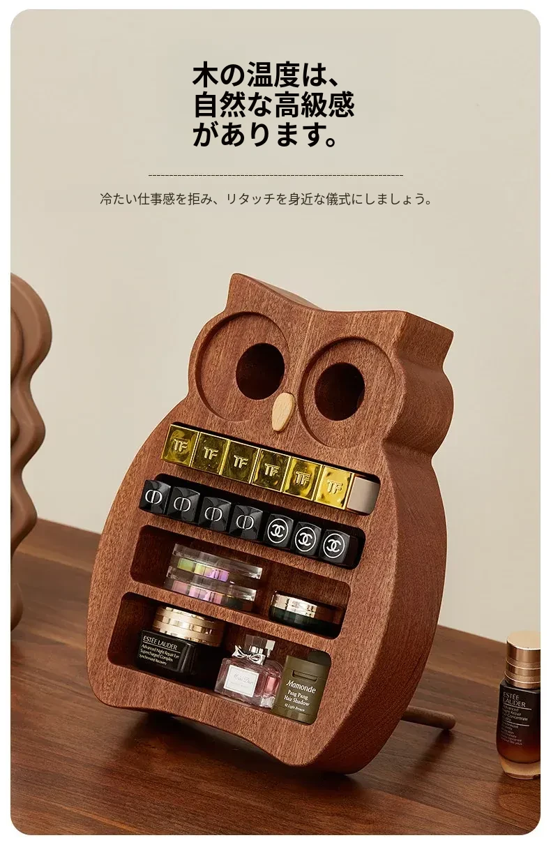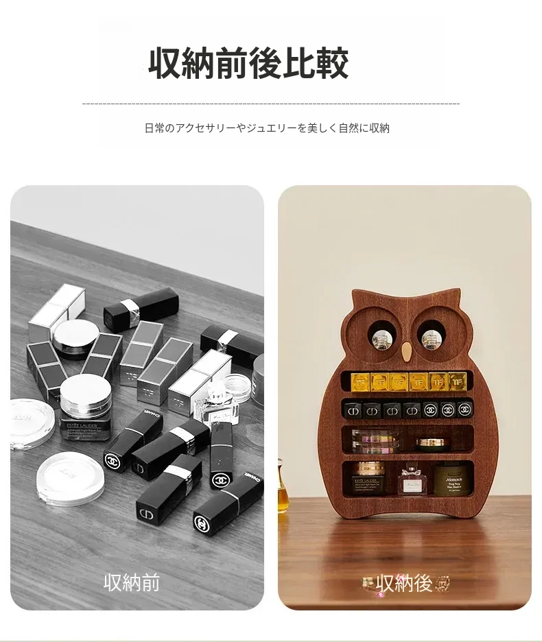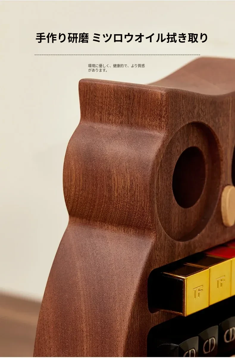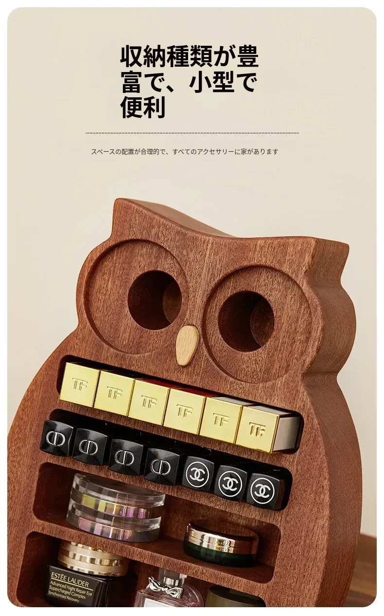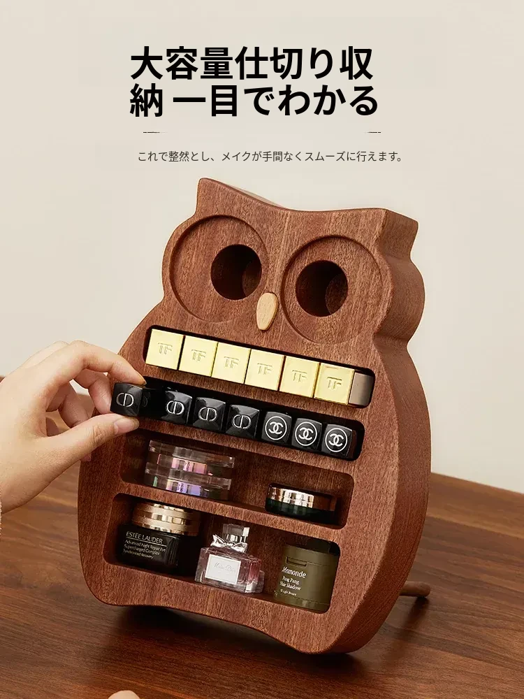 木町口紅収納ボックス - 高品質な無垢材使用!化粧台にぴったりなデザインで、リップ、ファンデーション、ブラシをスッキリ整理。美しいメイクアップスペースを作り出します!