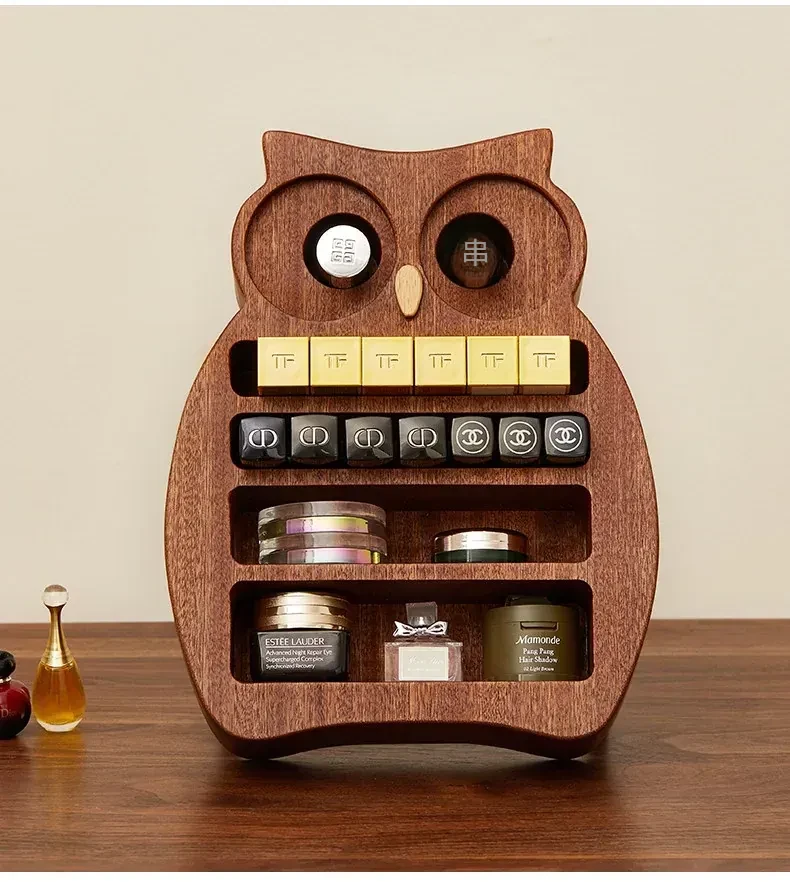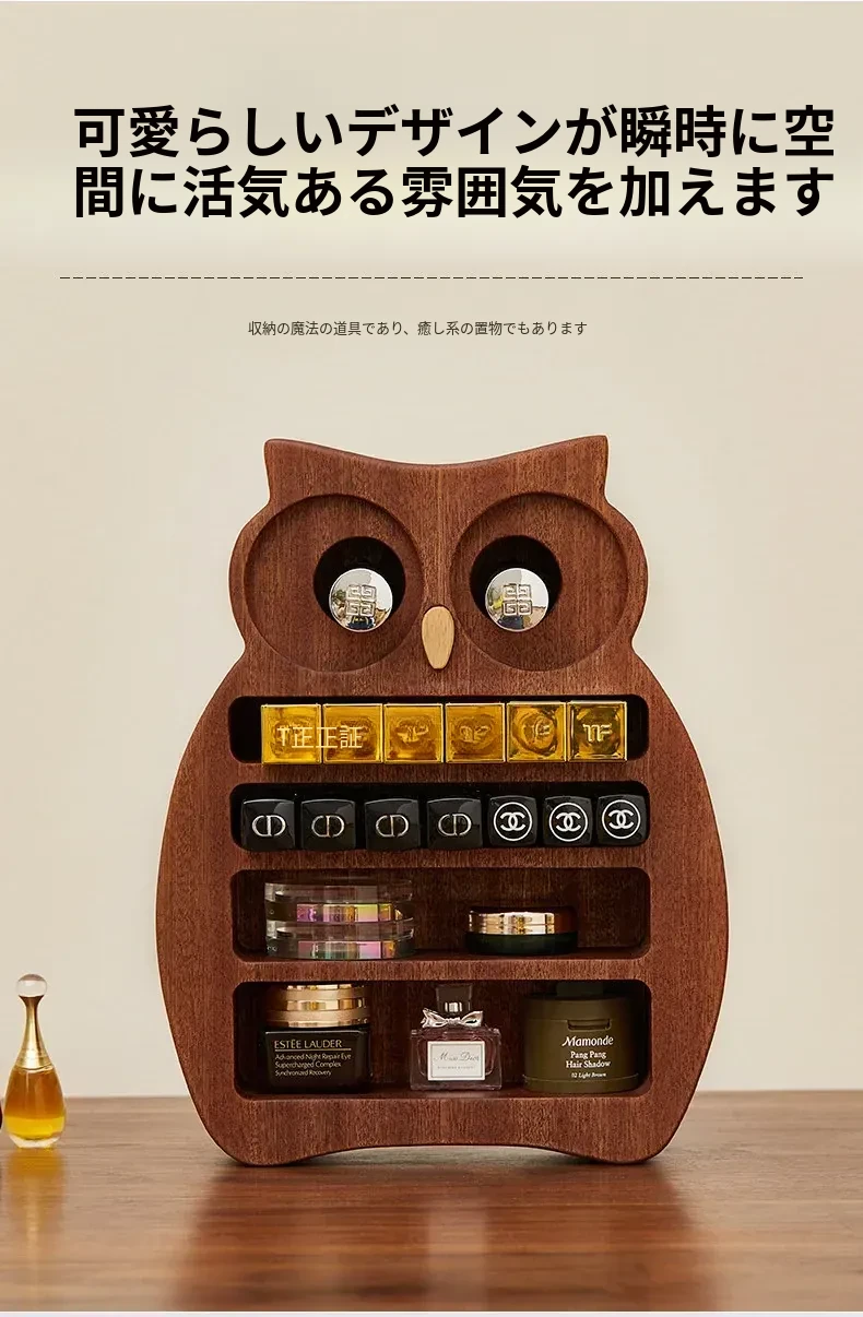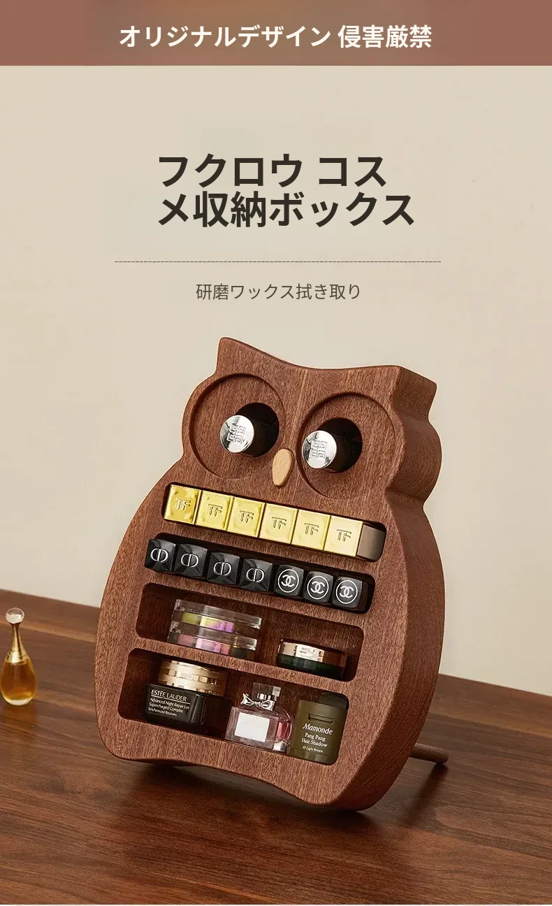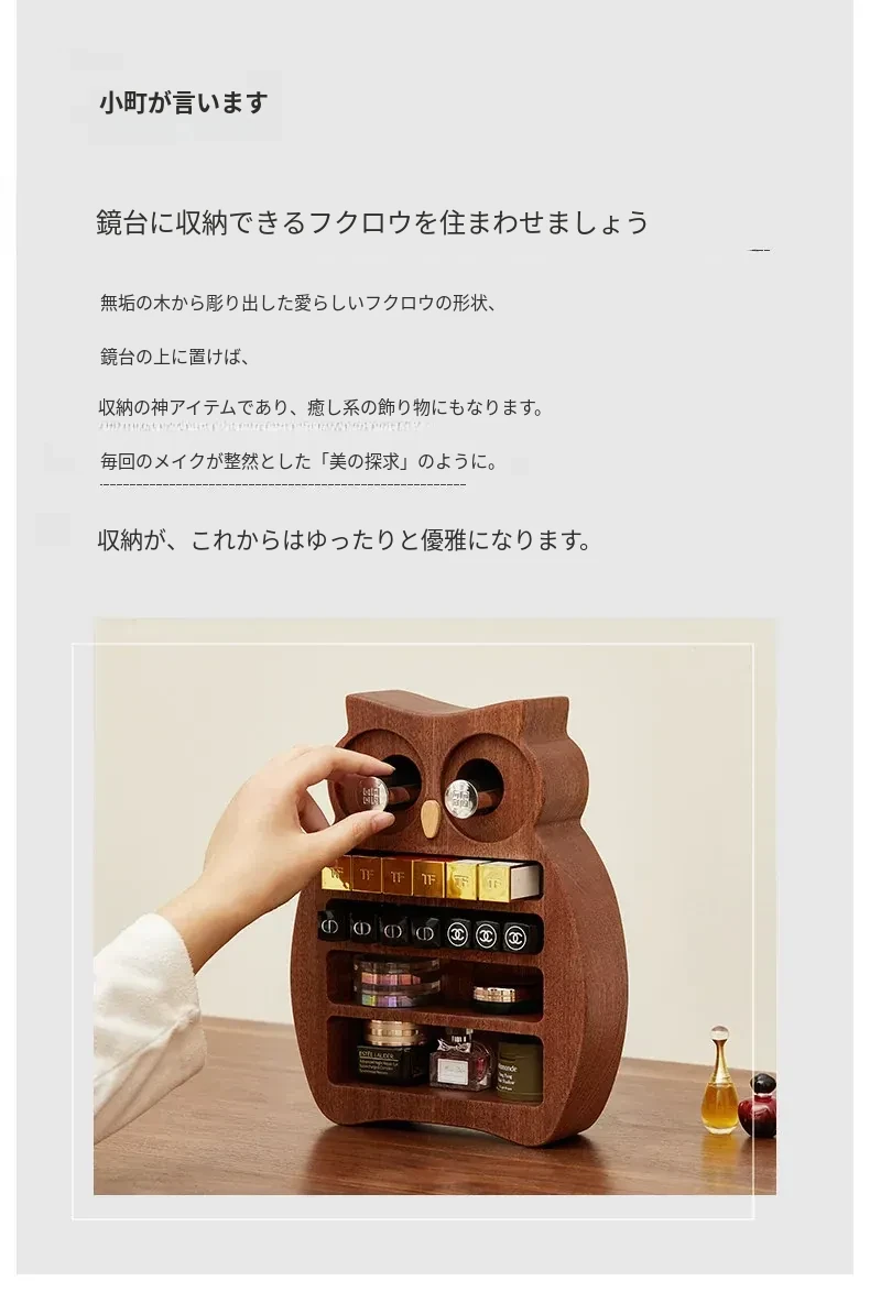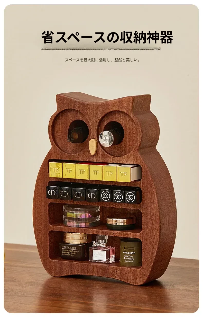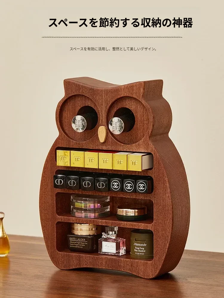 木町口紅収納ボックス - 高品質な無垢材使用!化粧台にぴったりなデザインで、リップ、ファンデーション、ブラシをスッキリ整理。美しいメイクアップスペースを作り出します!