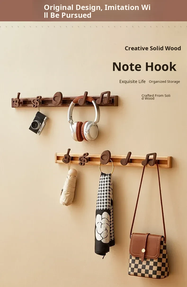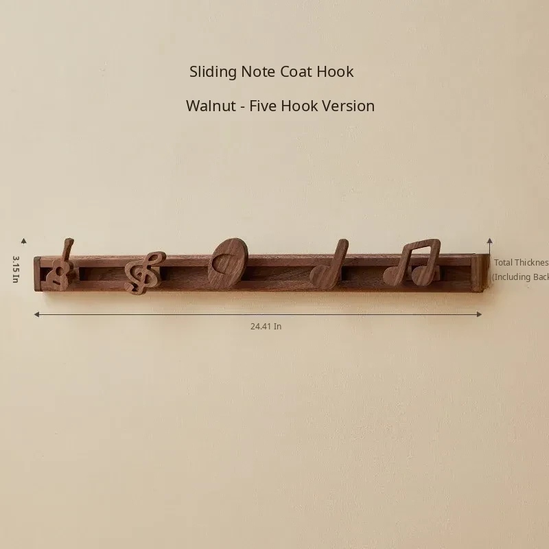 Black Walnut Sliding Note Hanger with 5 Hooks