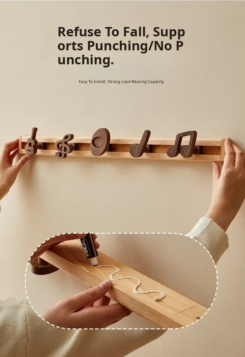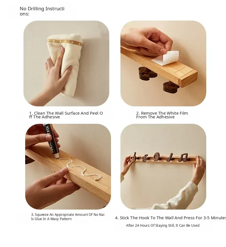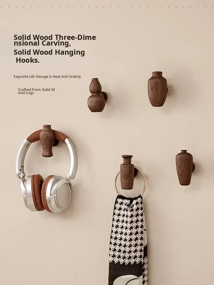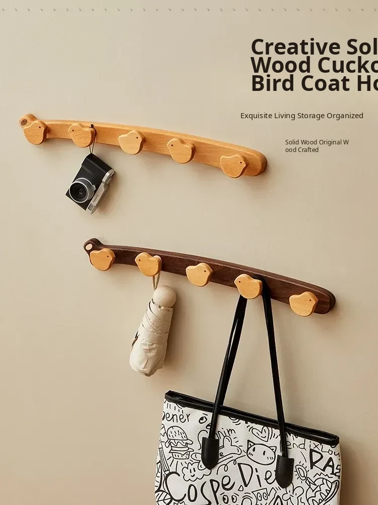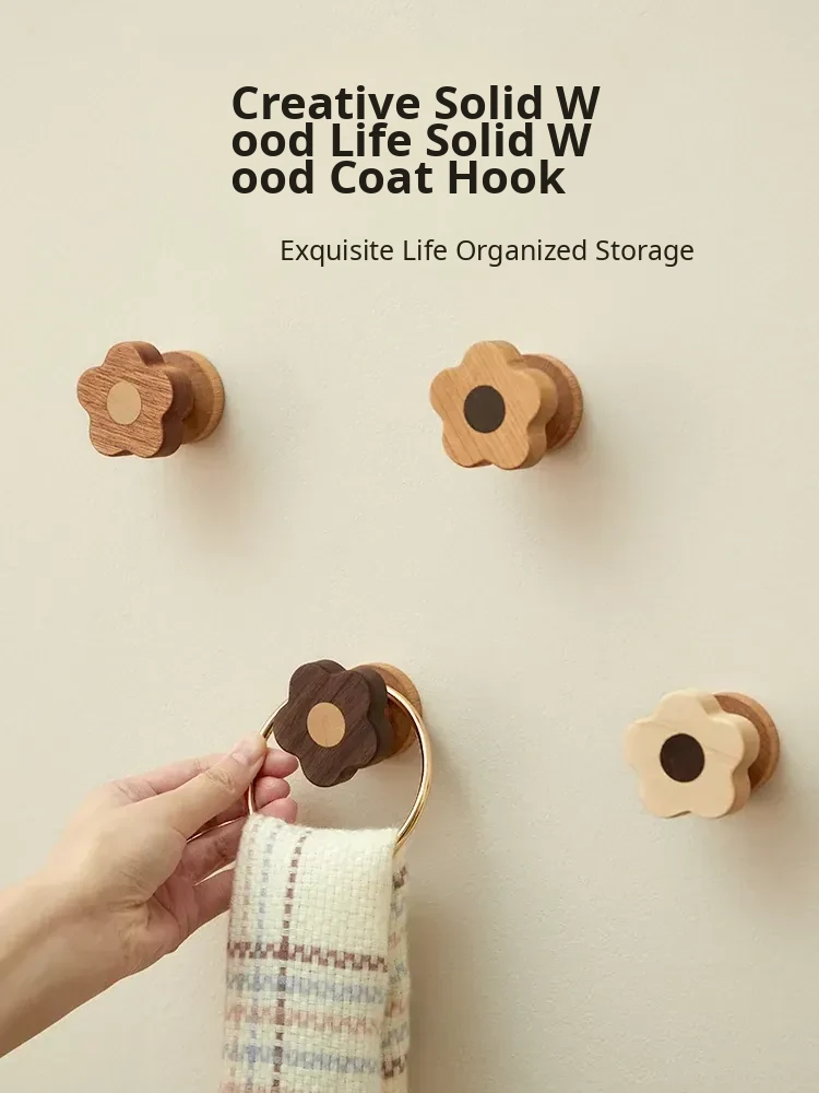 Wooden Wall-Mounted Coat Hooks for Entryway - Strong Adhesive, No Drilling Required, Sleek Design for Easy Use - Perfect for Coats and Hats