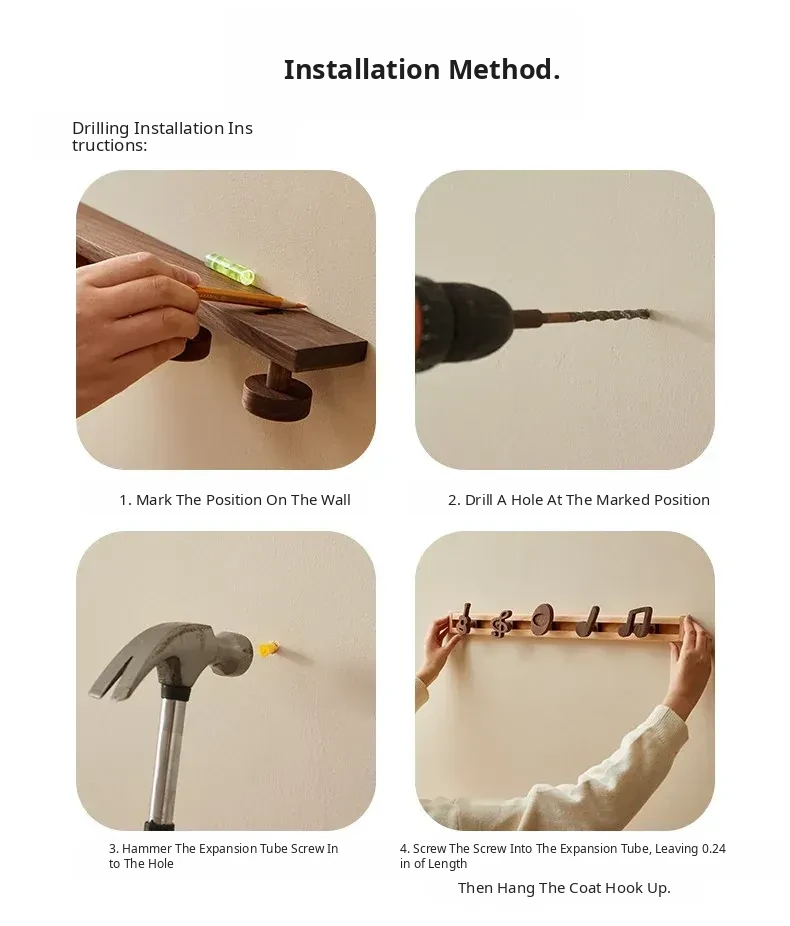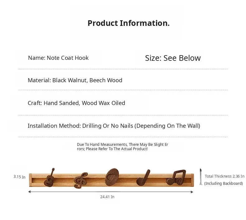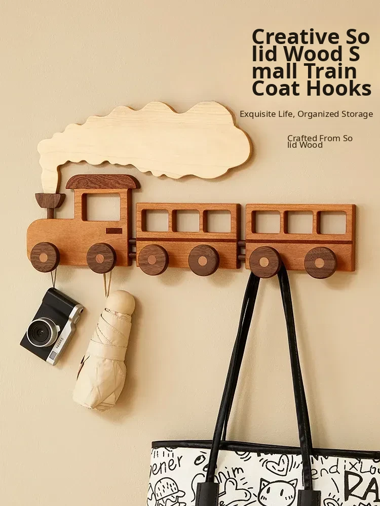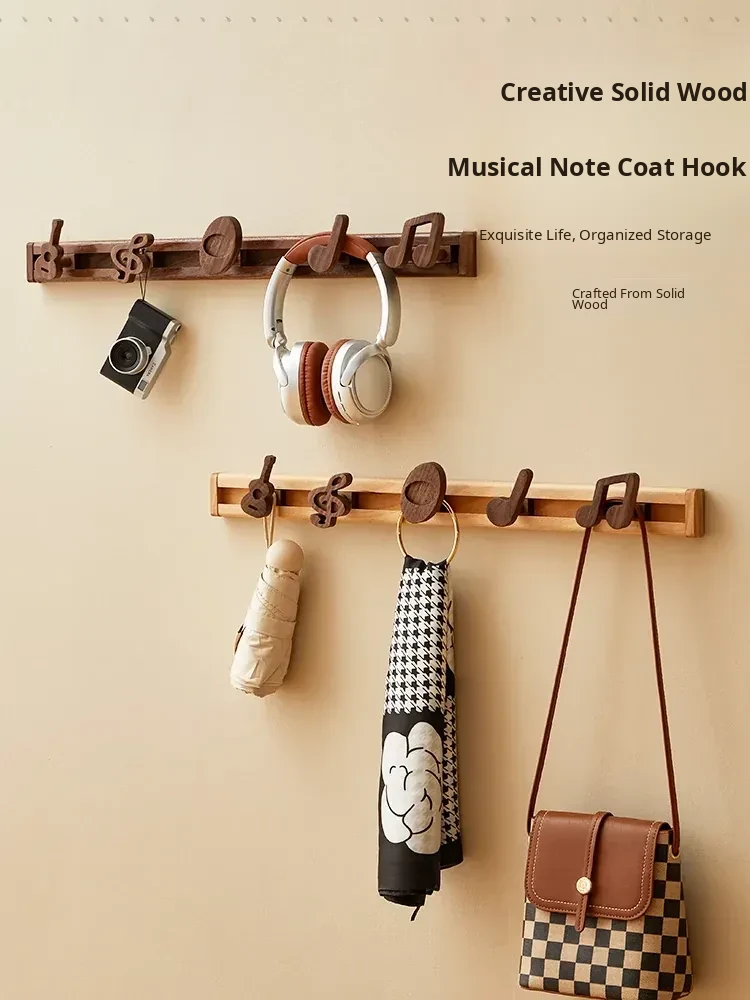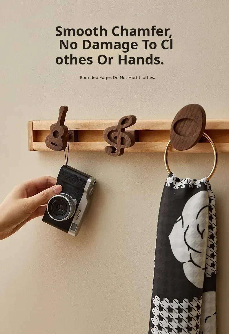 Wooden Wall-Mounted Coat Hooks for Entryway - Strong Adhesive, No Drilling Required, Sleek Design for Easy Use - Perfect for Coats and Hats
