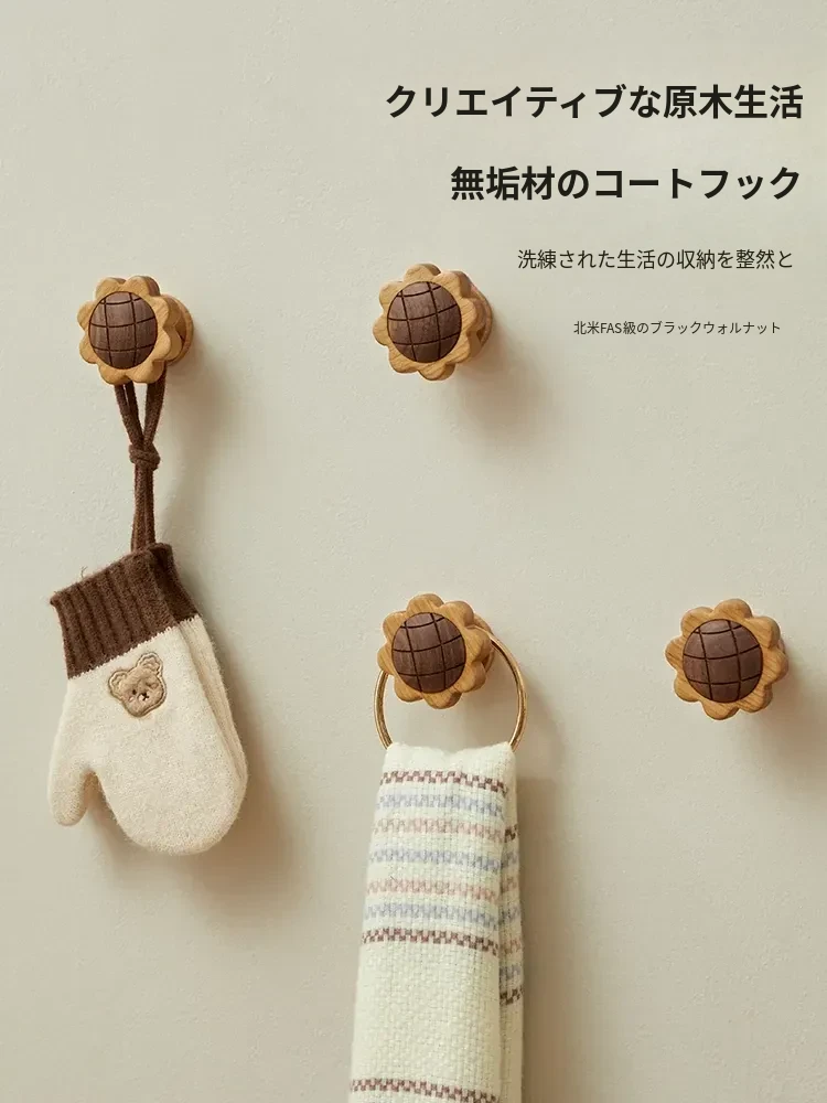木町の玄関用壁掛けフック - 強力粘着技術で取り付け簡単!穴あけ不要、スタイリッシュな高級天然木製で、コートや帽子をしっかり支える理想の収納アイテムです。