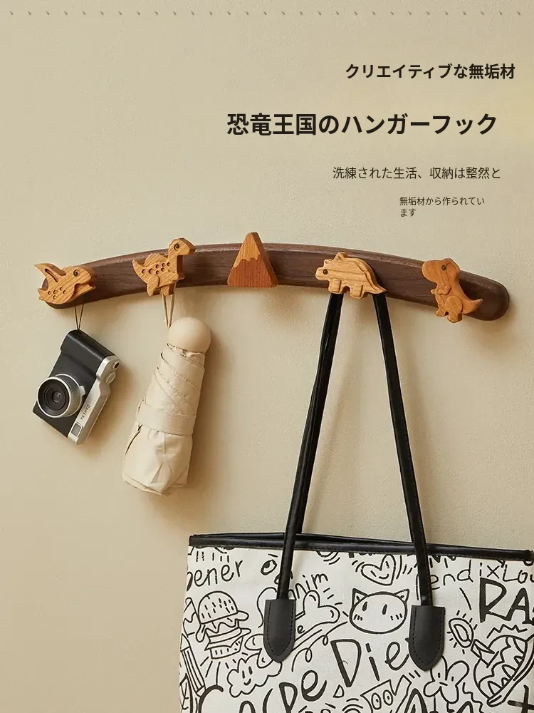 木町の実木製かわいい恐竜デザインの子供部屋用ハンガーラック。玄関やドアの裏に簡単取り付け、穴あけ不要で手軽に使える!お子様のお部屋を楽しく彩るアイテムです。