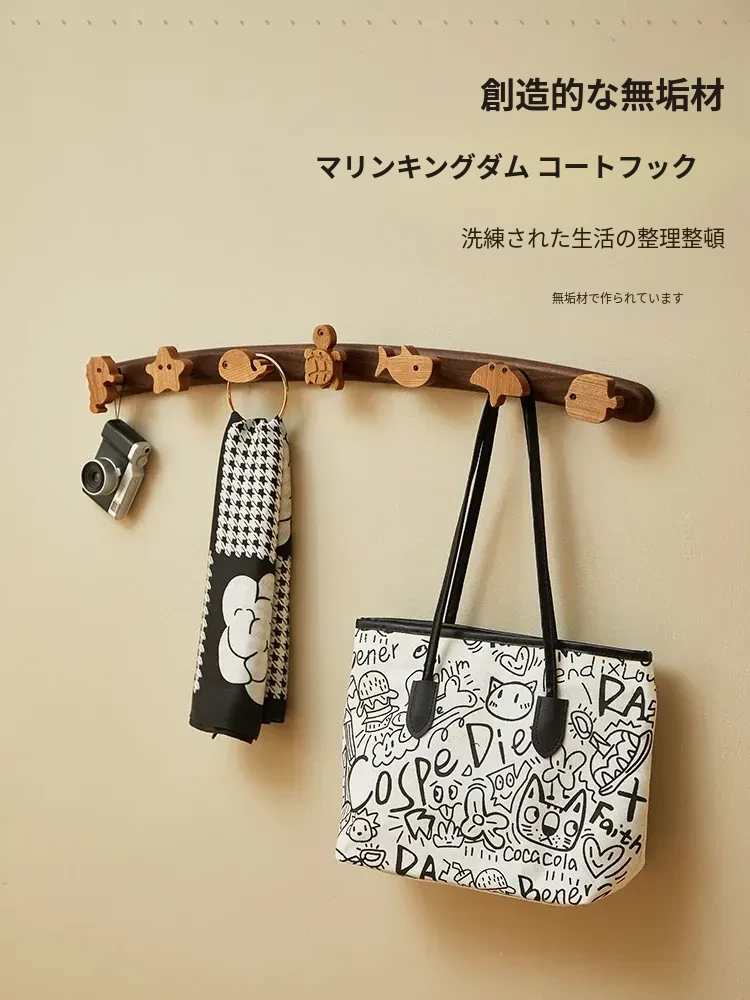 木町のかわいいカートゥーン海洋テーマの無垢材ハンガーラック!子供部屋や玄関にぴったり、簡単取り付けで壁に穴を開けずに使用可能。おしゃれで実用的な収納アイテムで、毎日のコーディネートを楽しく!
